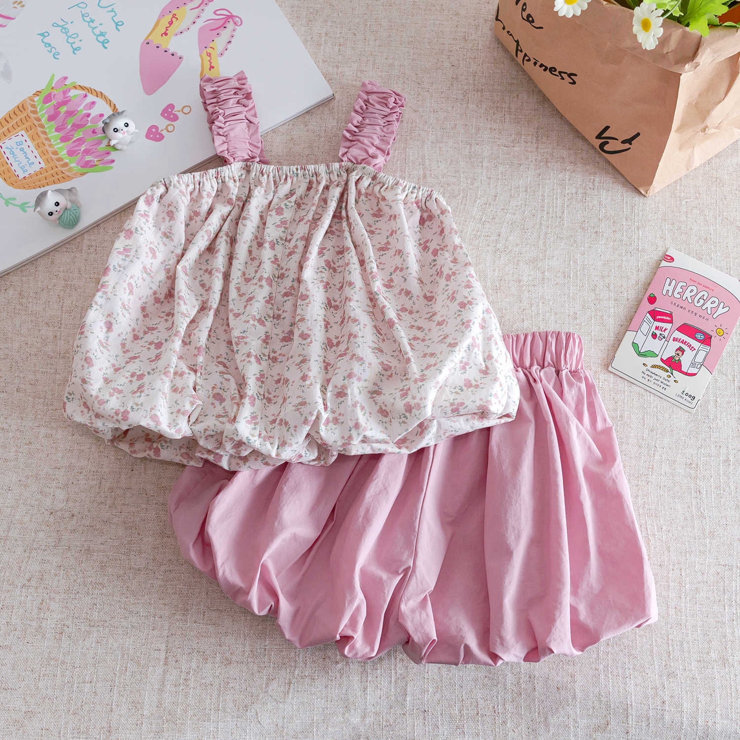 소녀의 2025 서양식 세트 여름 여성 핑크 꽃 바지 세트 여름 쿨 투피스 세트