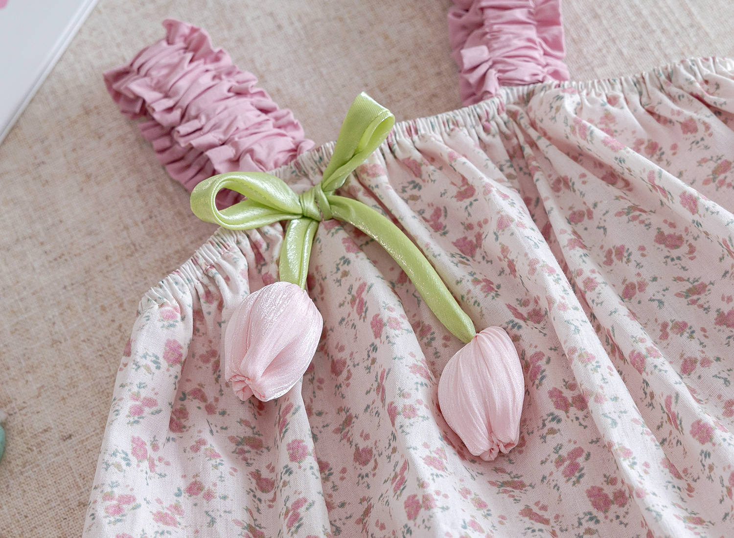 소녀의 2025 서양식 세트 여름 여성 핑크 꽃 바지 세트 여름 쿨 투피스 세트스토어 가기