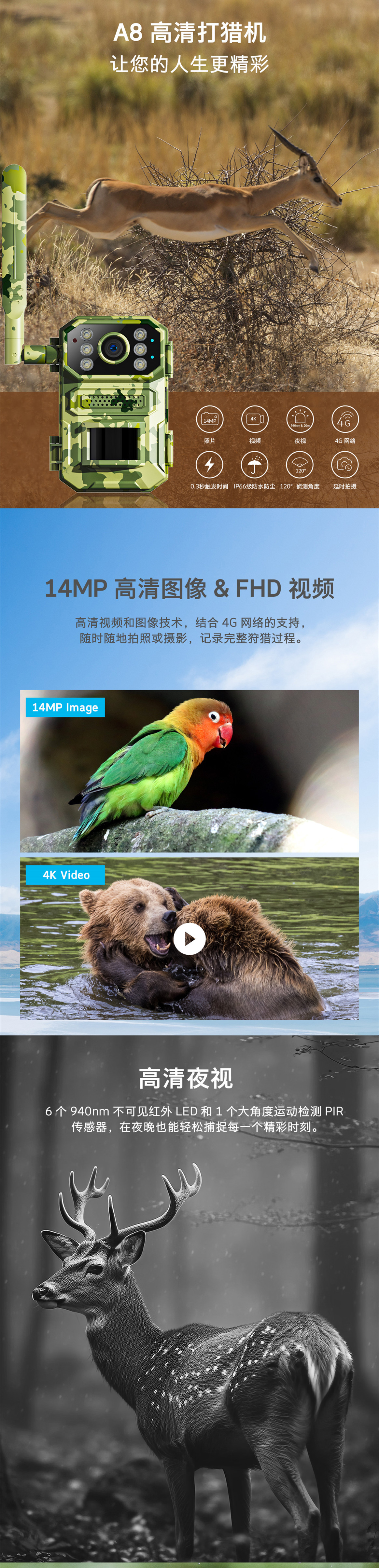 4G打猎相机户外高清狩猎相机夜视红外追踪感应看果园动物记录仪