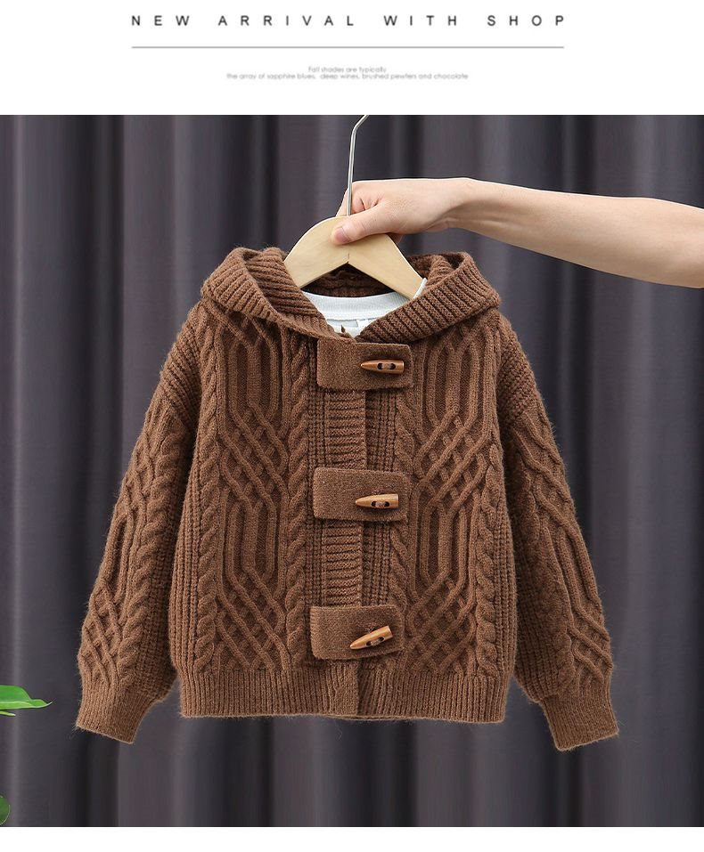 아동용 니트 가디건 가을 의류 2023 새로운 소년 스웨터 두꺼운 가을, 겨울 베이비 코트 유행 소년 모직 트렌드스토어 가기