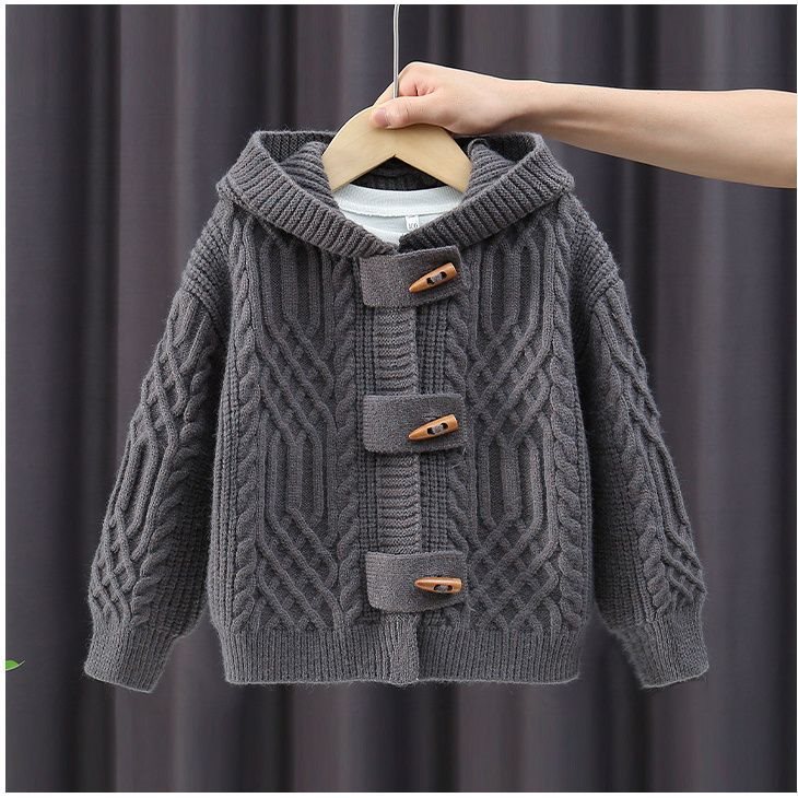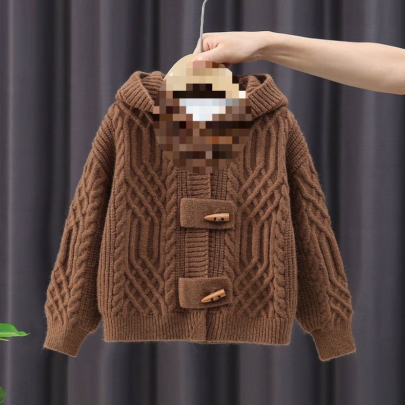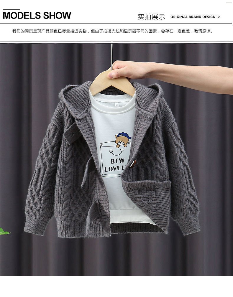 아동용 니트 가디건 가을 의류 2023 새로운 소년 스웨터 두꺼운 가을, 겨울 베이비 코트 유행 소년 모직 트렌드