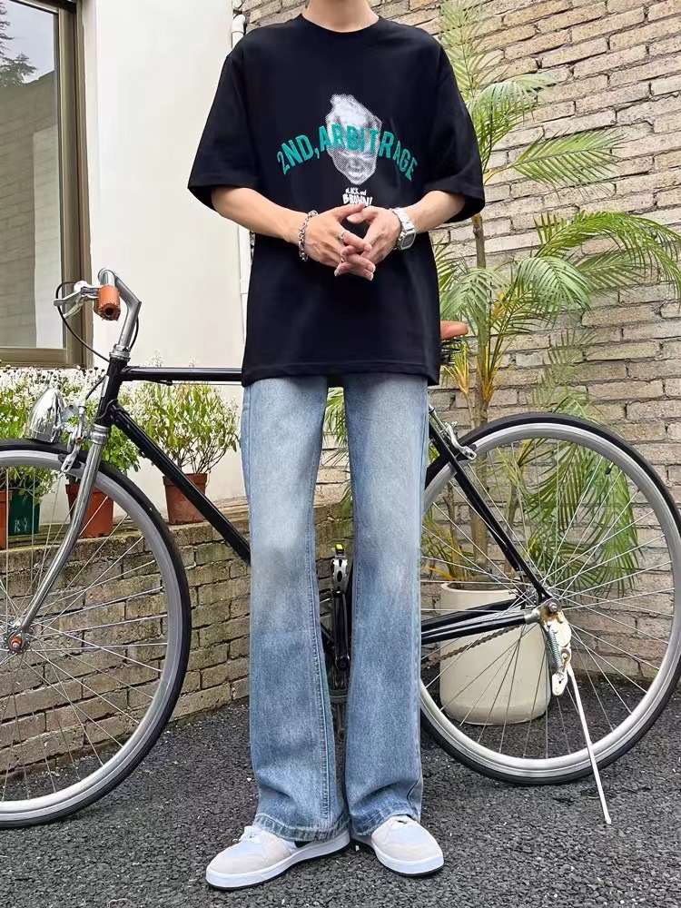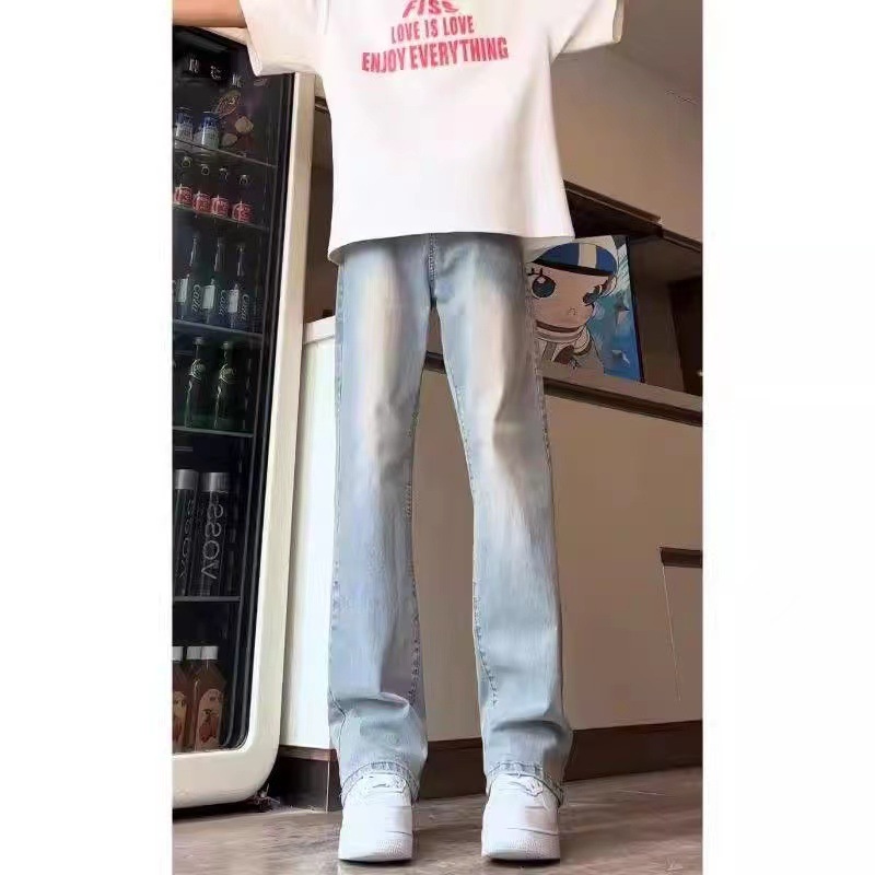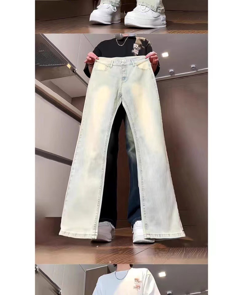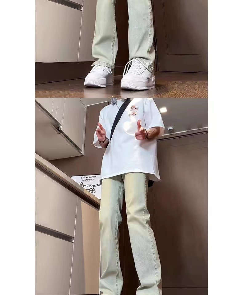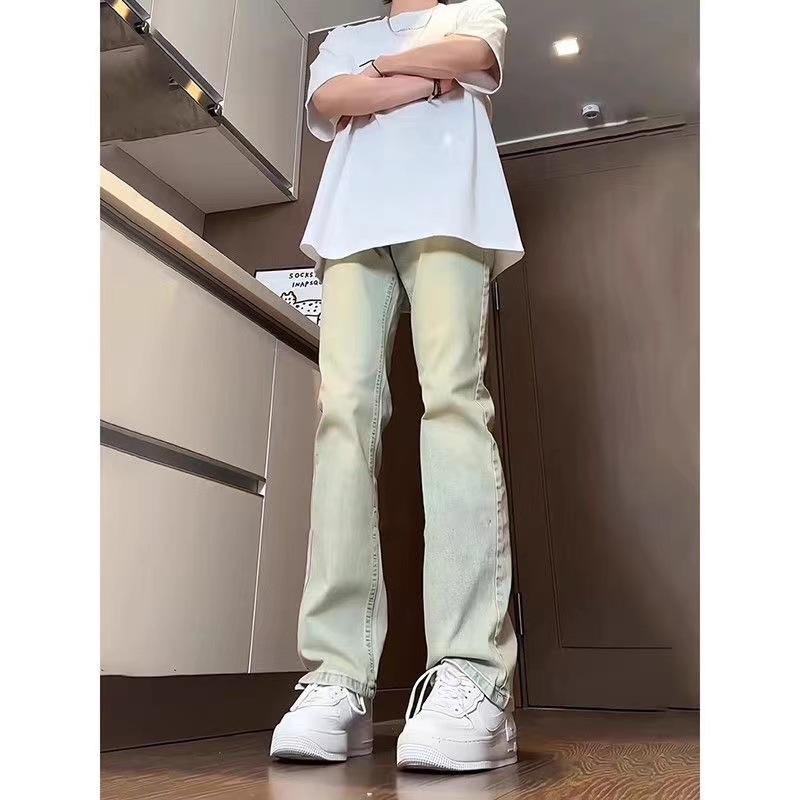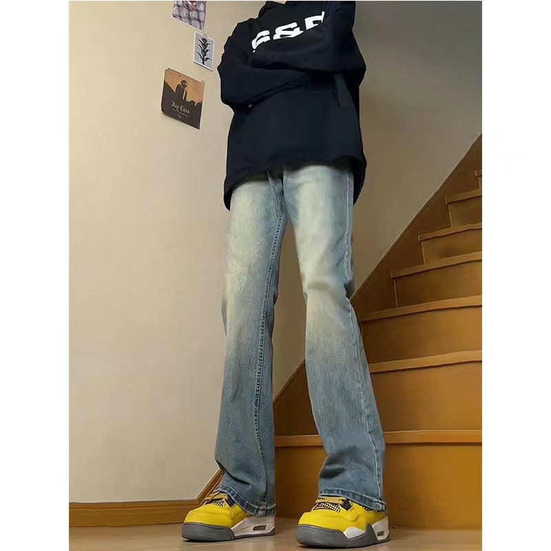 레트로 청바지 남성 여름 마이크로 플레어 팬츠 스트레이트 아메리칸 인 핸섬 팬츠 하이 스트리트 워싱 옐로우 머드 컬러스토어 가기