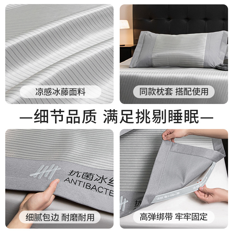 하이 엔드 아이스 실크 매트 침대 시트 3 피스 세트 여름 침대 모자 빨 수있는 항균 홈 에어컨 소프트 매트스토어 가기