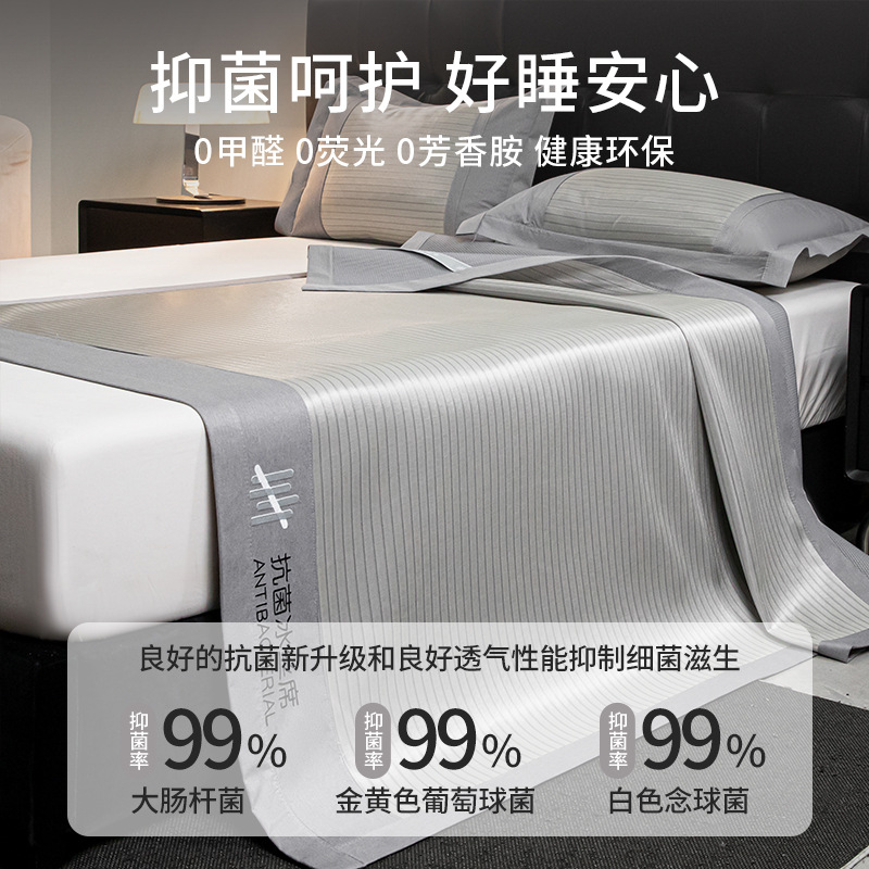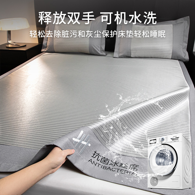하이 엔드 아이스 실크 매트 침대 시트 3 피스 세트 여름 침대 모자 빨 수있는 항균 홈 에어컨 소프트 매트