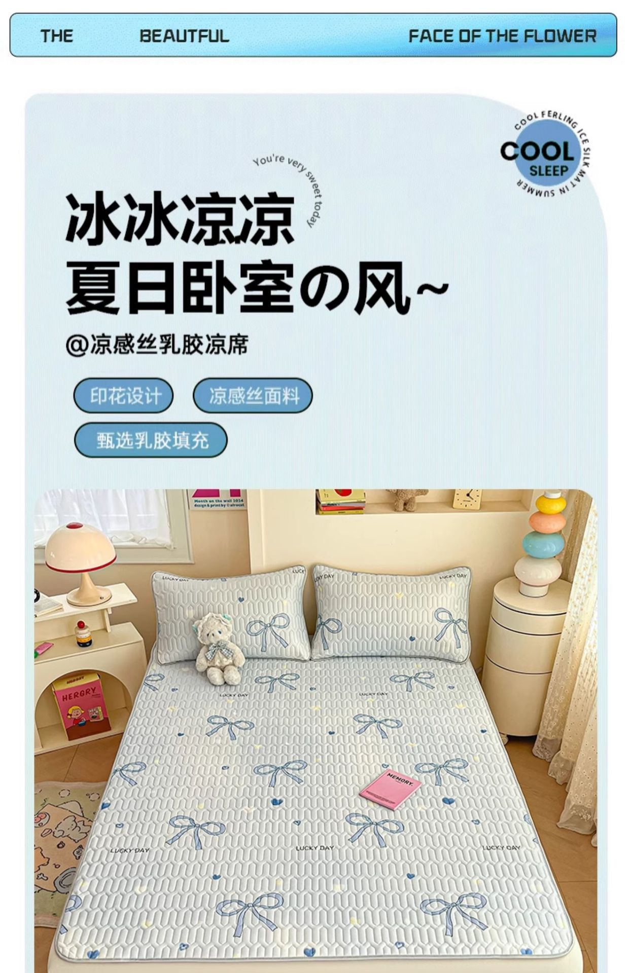 2025 라텍스 매트 아이스 실크 매트 기계 빨 수있는 3 피스 학생 기숙사 침대 싱글 여름 에어컨 소프트 매트