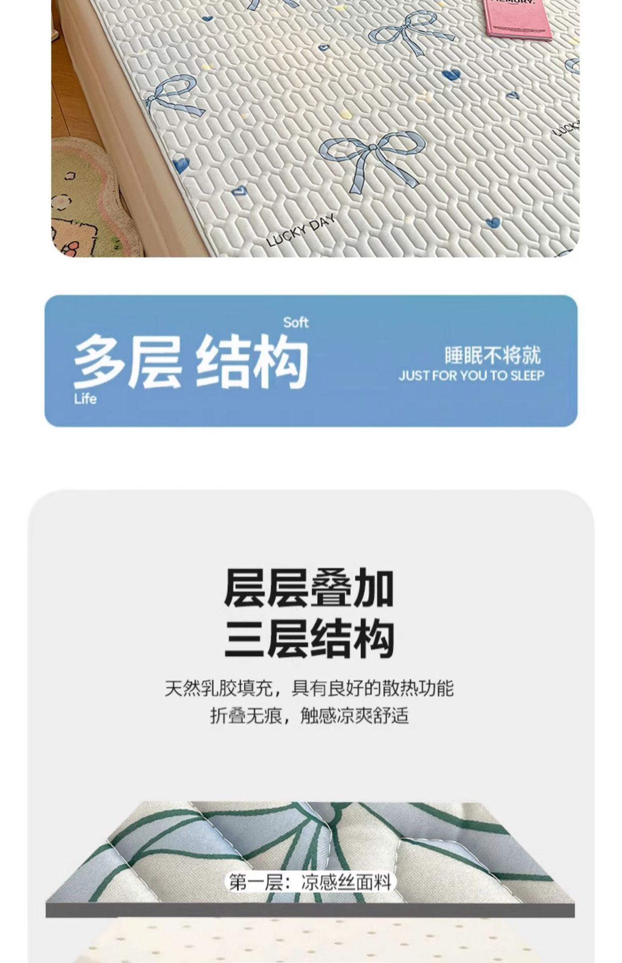 2025 라텍스 매트 아이스 실크 매트 기계 빨 수있는 3 피스 학생 기숙사 침대 싱글 여름 에어컨 소프트 매트스토어 가기
