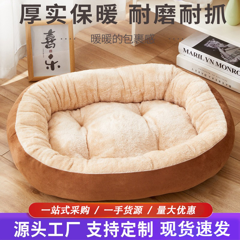 사계절 내내 사용 가능한 국경 간 애완 고양이 타원형 둥지, 겨울에는 두꺼워지고 따뜻함, 소형견 겨울 애완 동물 침대 수면 매트