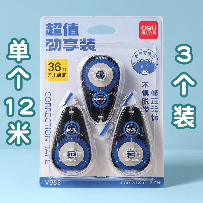 Deli v965 교정 테이프 세트 36 미터 대용량 보정 학생 높은 색상 값 문구 보정 테이프 도매스토어 가기
