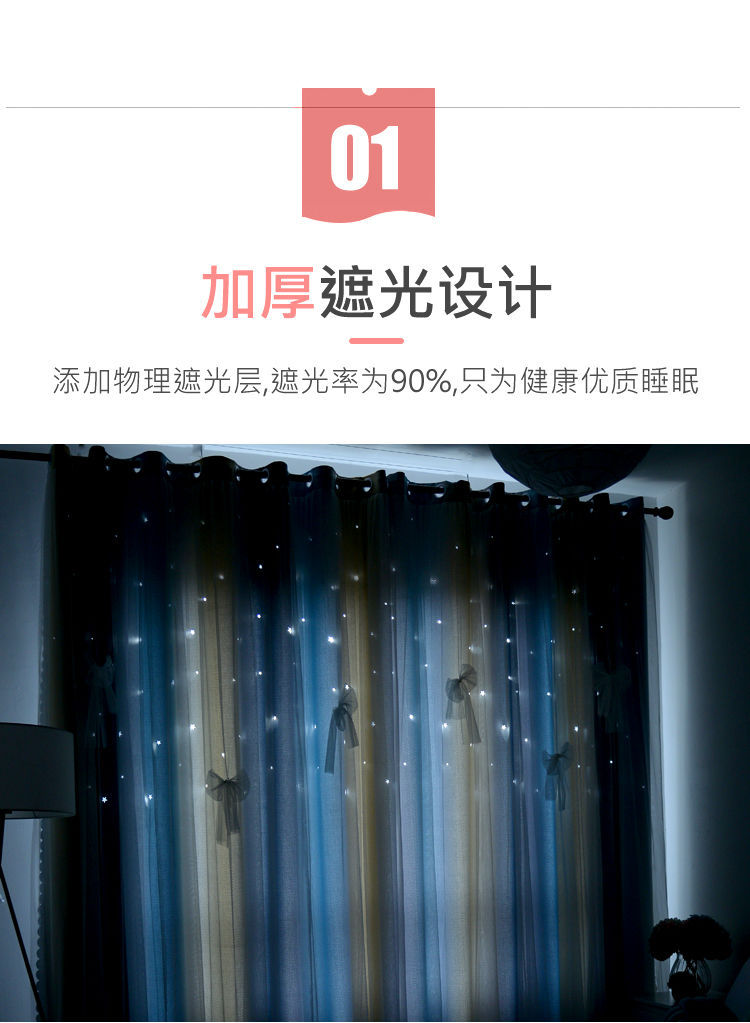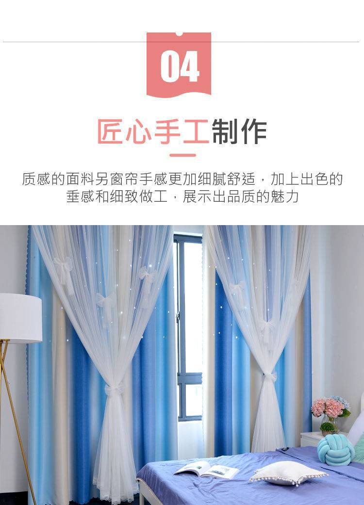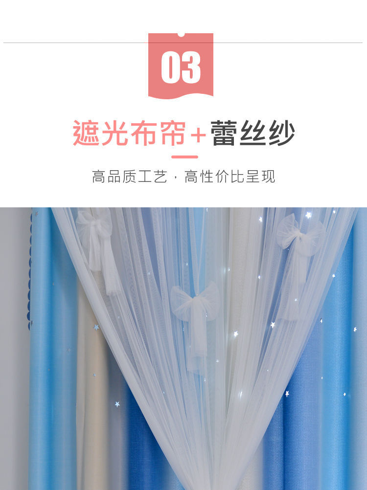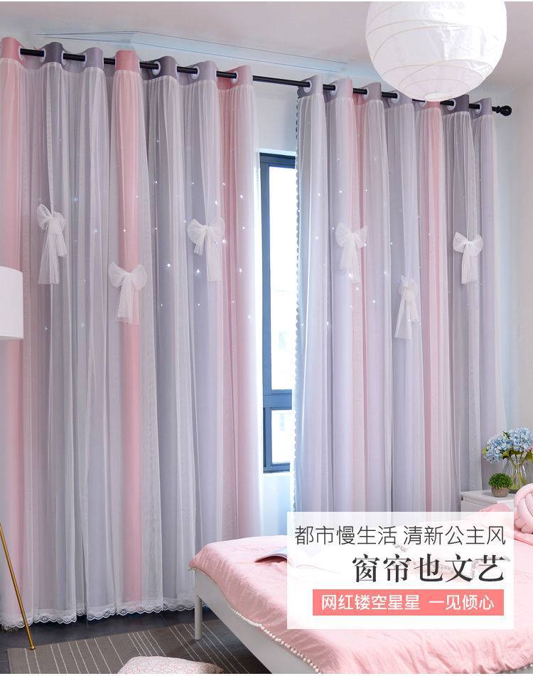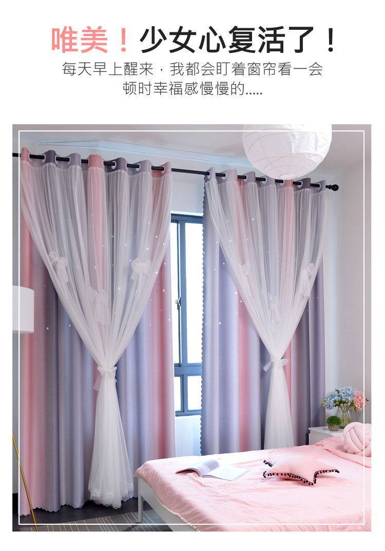 인터넷 연예인 공주 스타일 소녀 방 커튼 침실 차광 중공 별 발코니 베드 창 이중 레이어 천 원사 통합스토어 가기