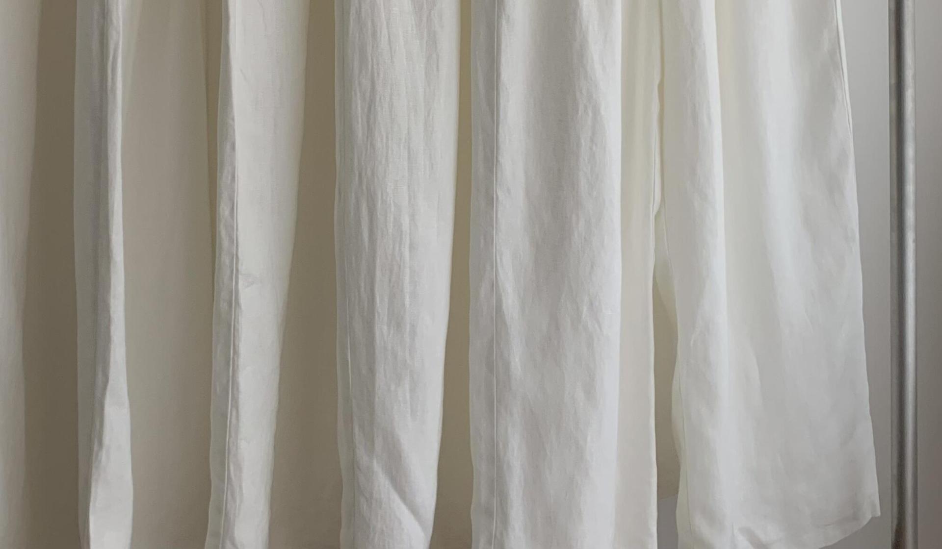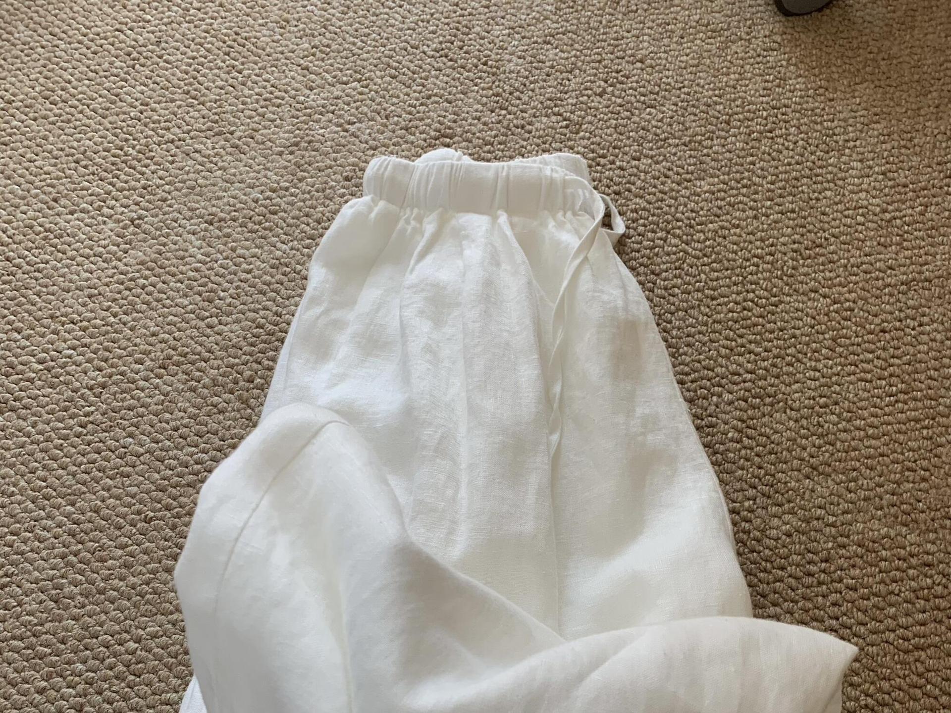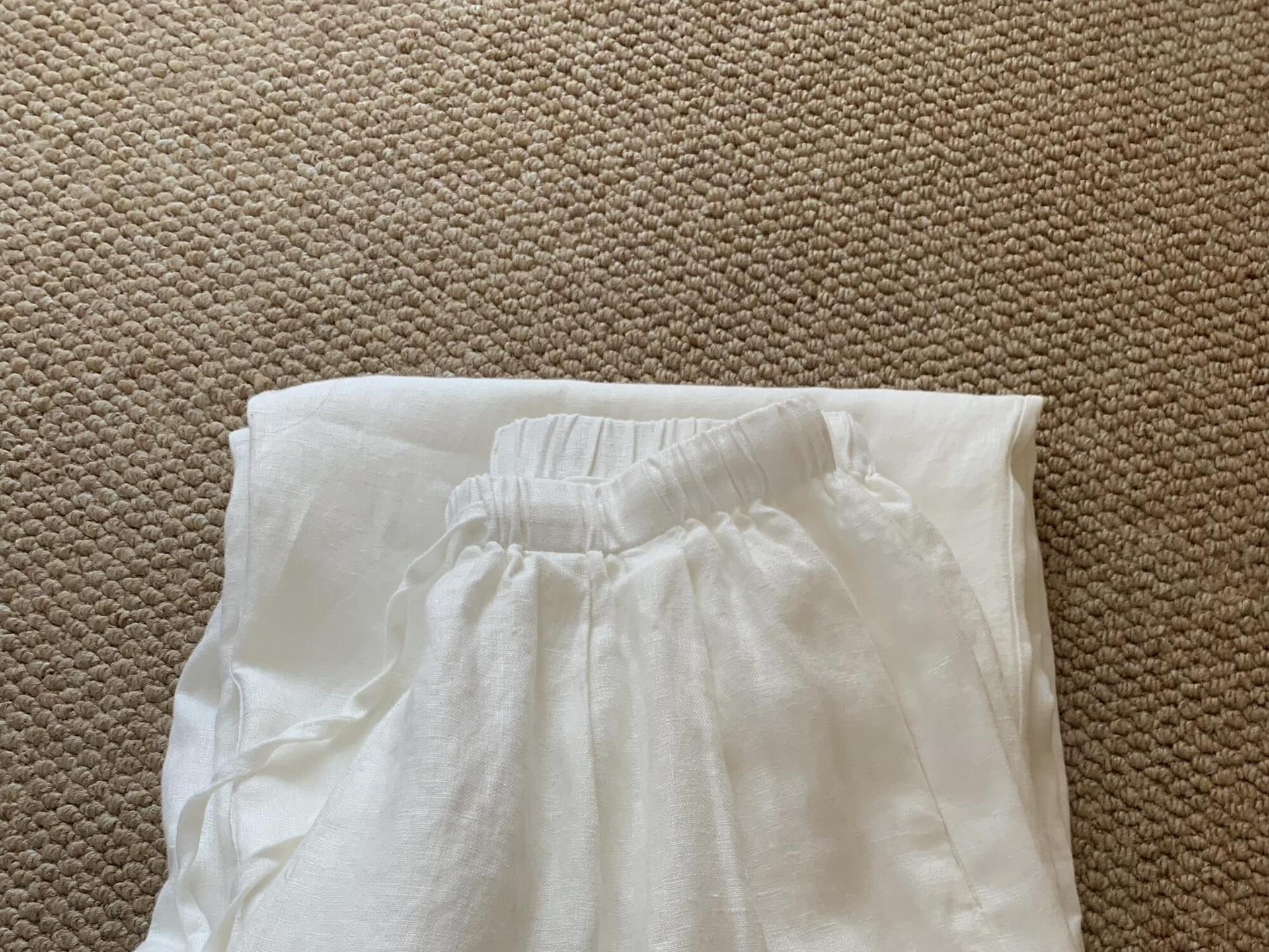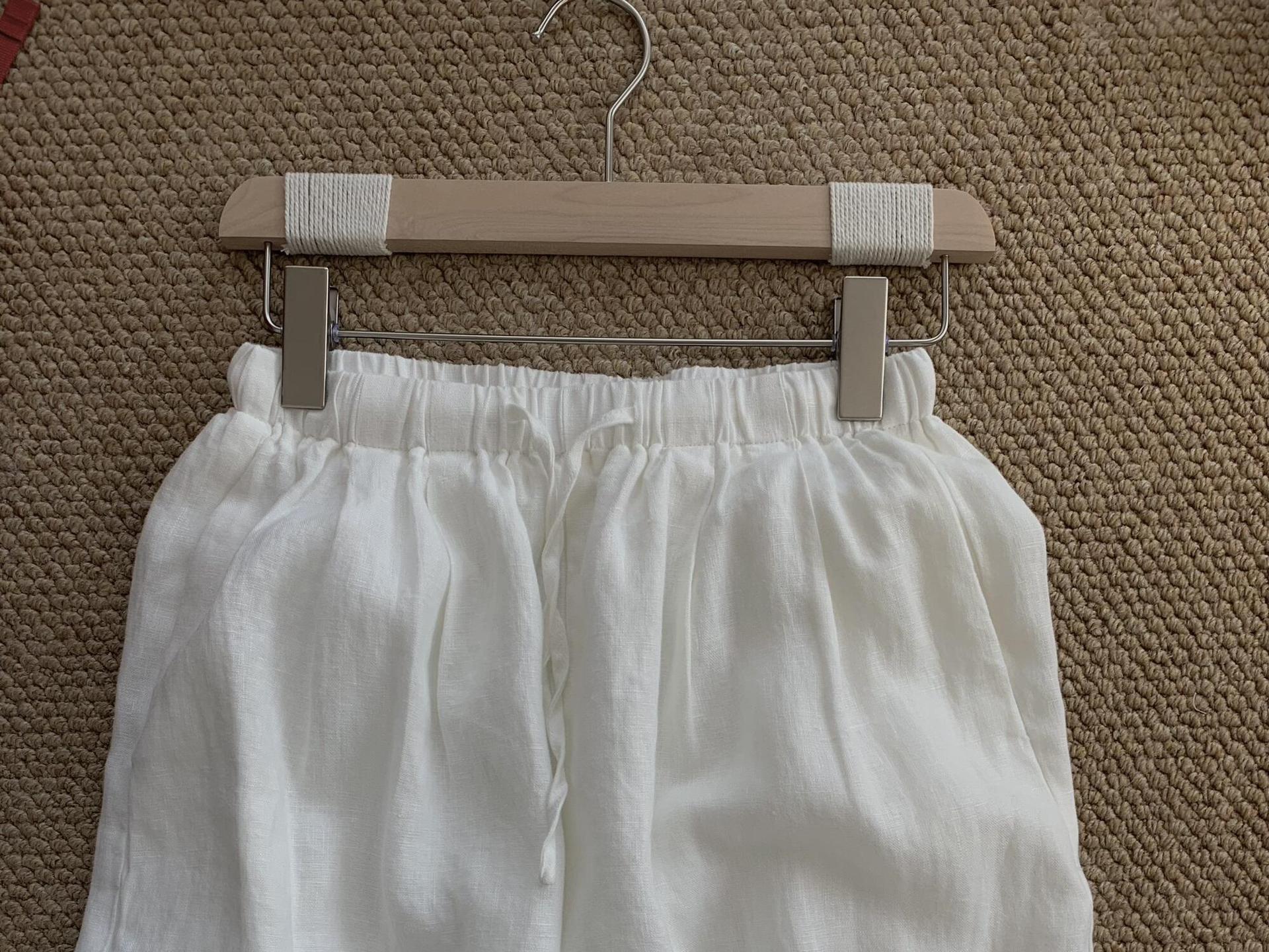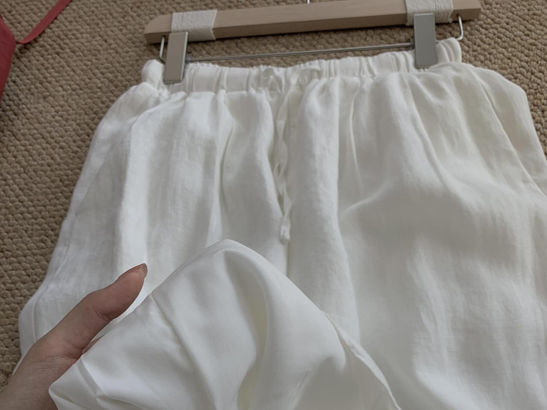100亚麻裤高货!带内衬不透的白色纯亚麻裤松紧腰系带极简