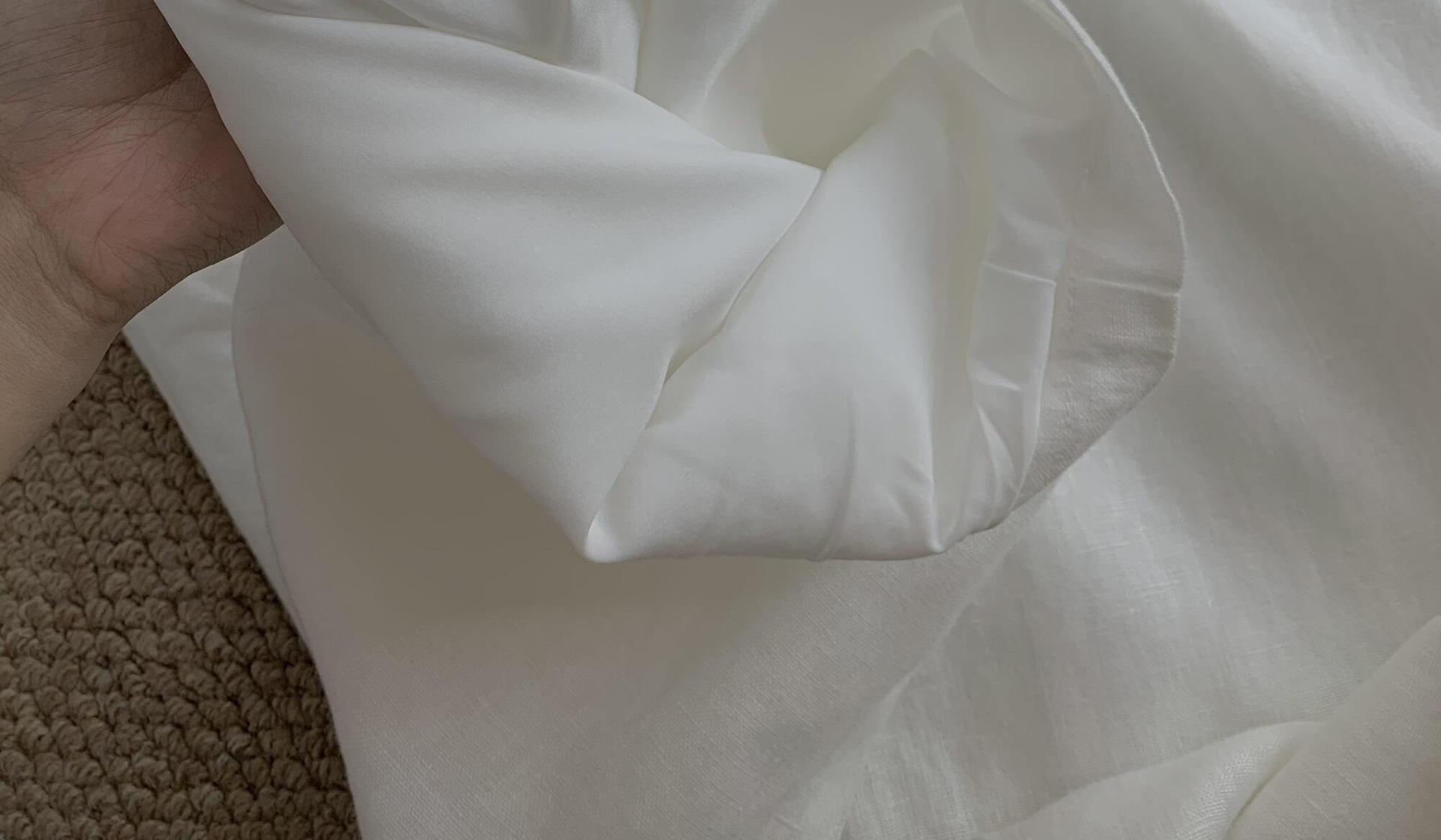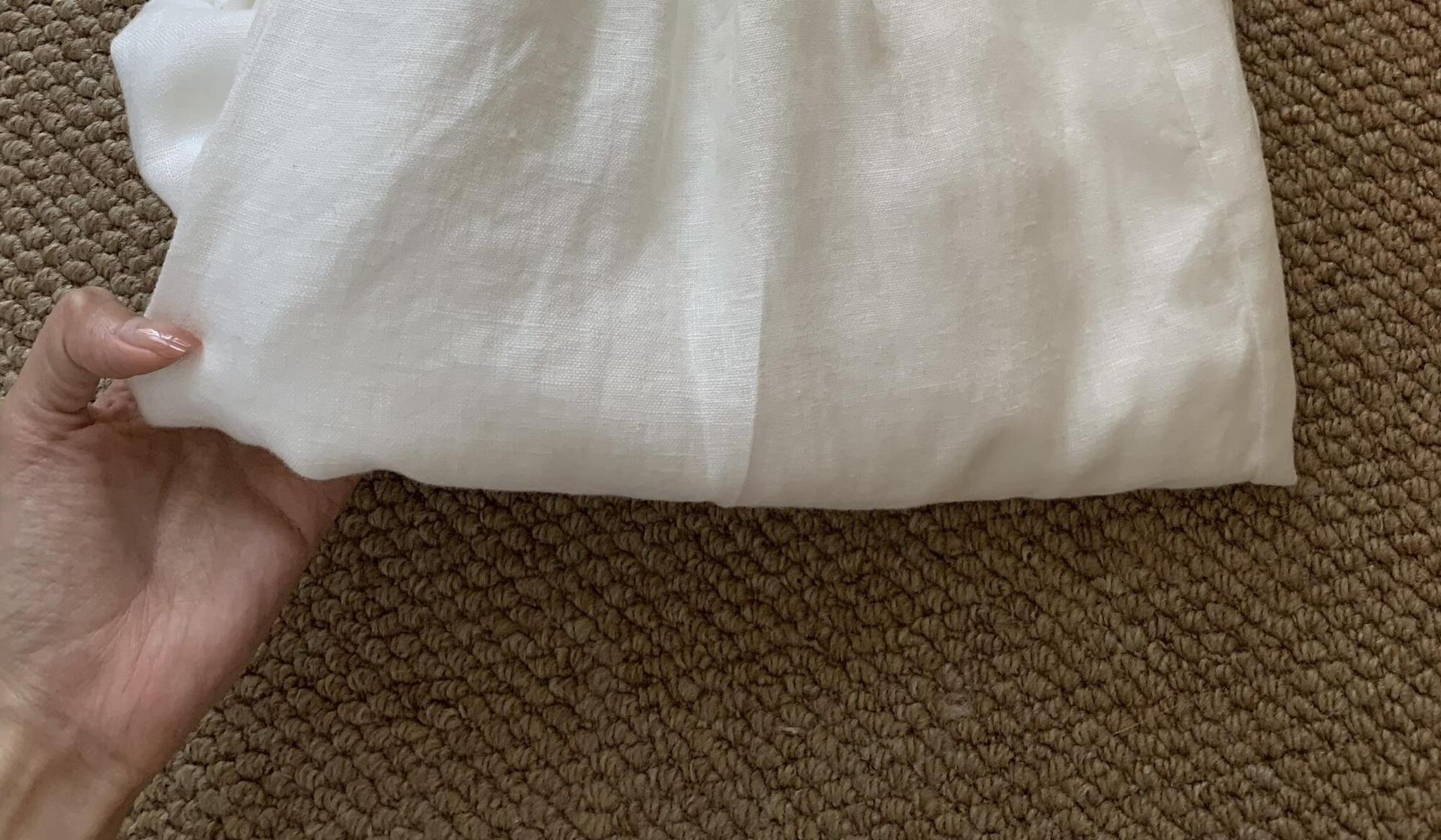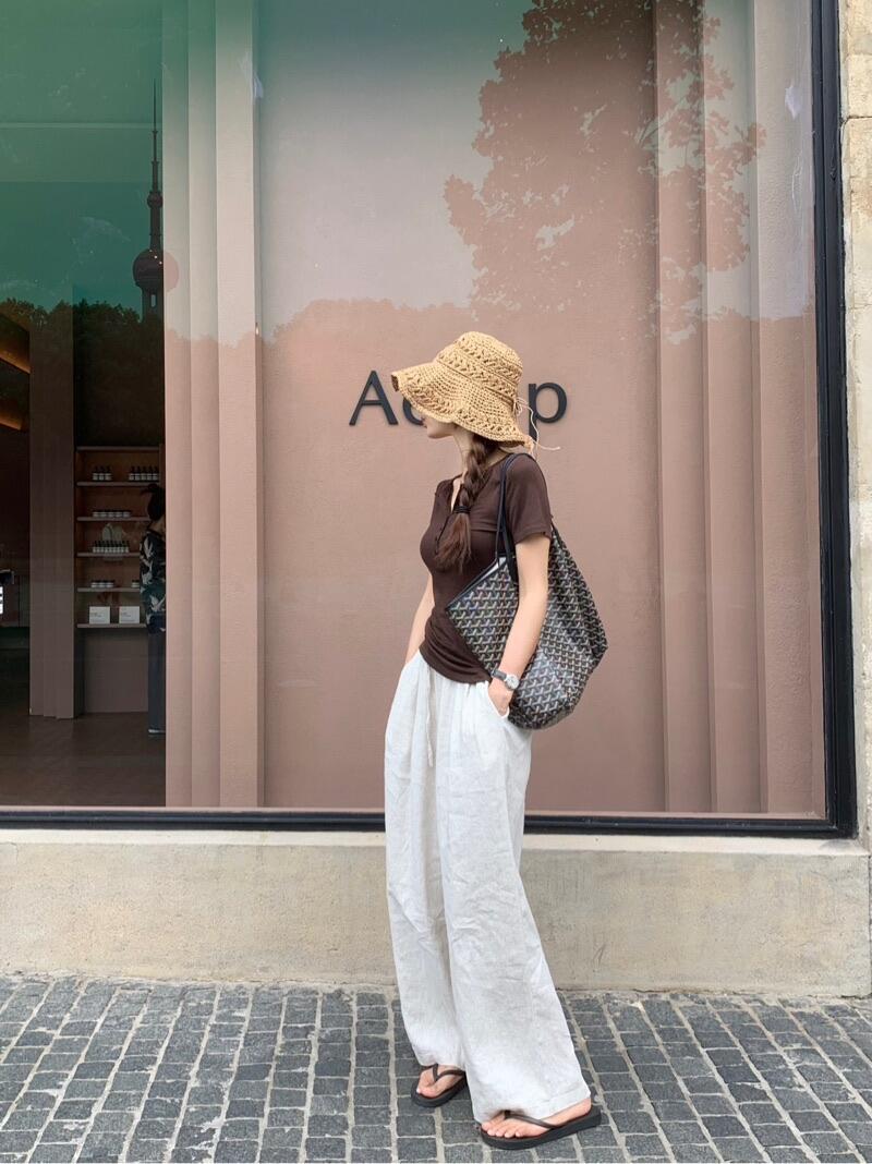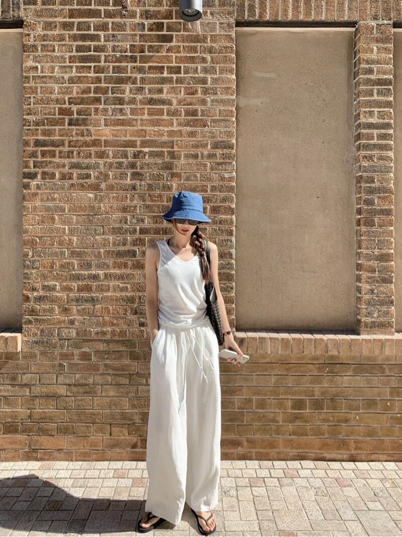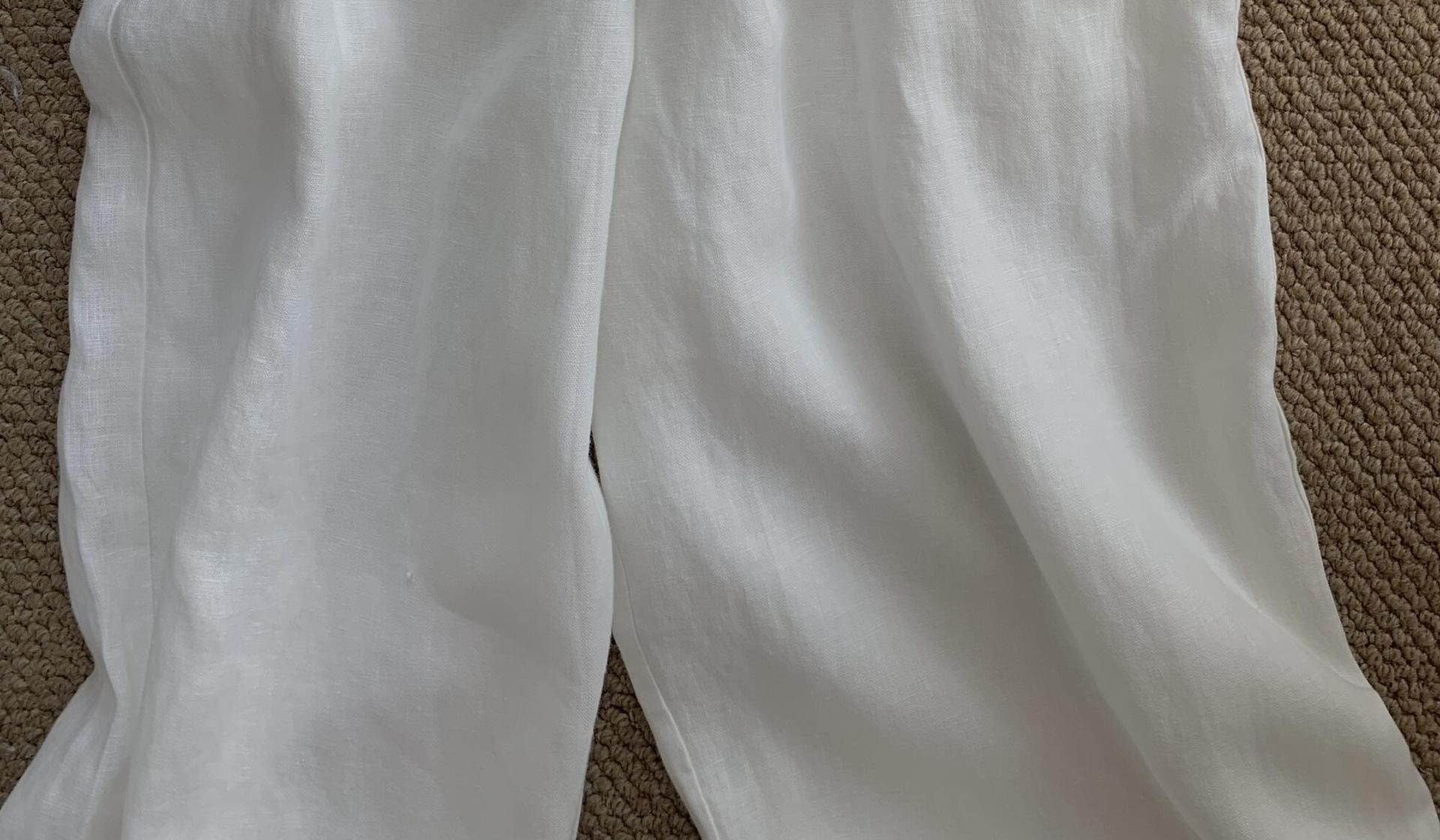 100亚麻裤高货!带内衬不透的白色纯亚麻裤松紧腰系带极简