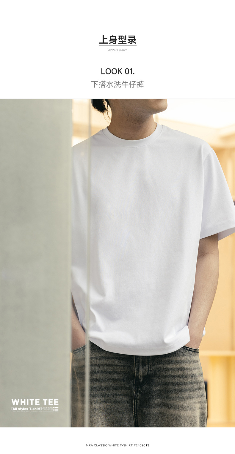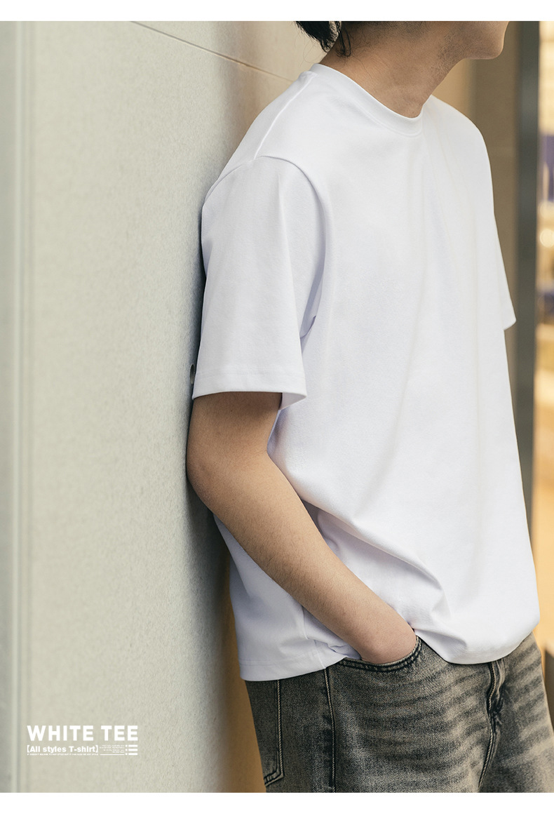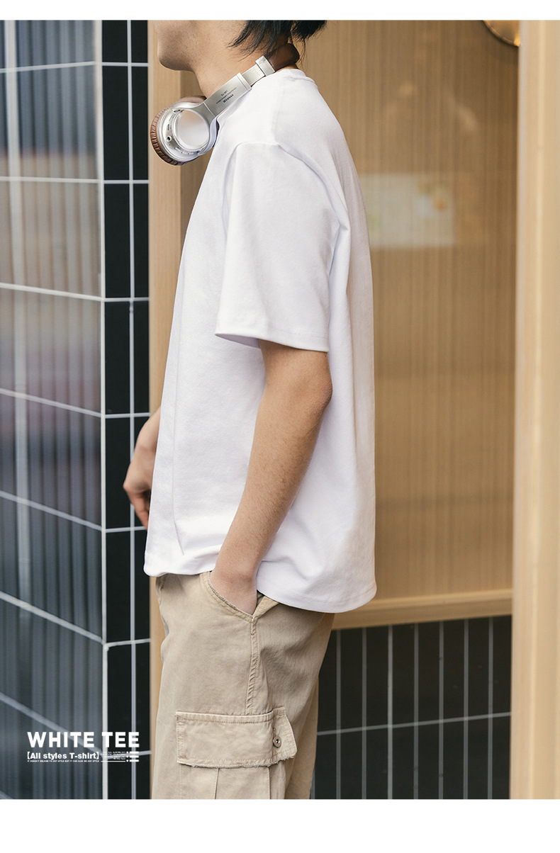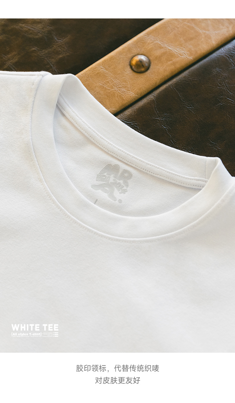 MRA 남성 아메리칸 레트로 헤비 코튼 티셔츠 오른쪽 어깨 화이트 반팔 반팔 셔츠 남성 여름