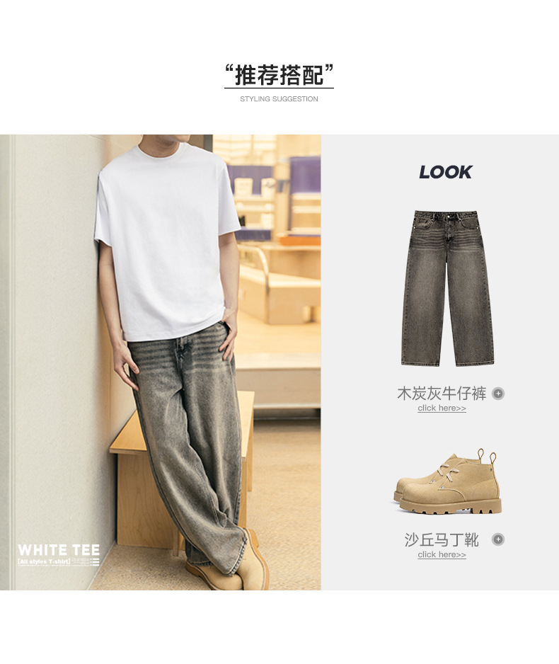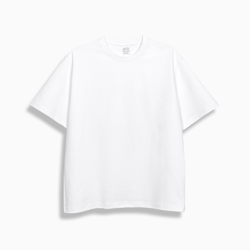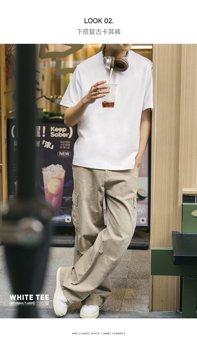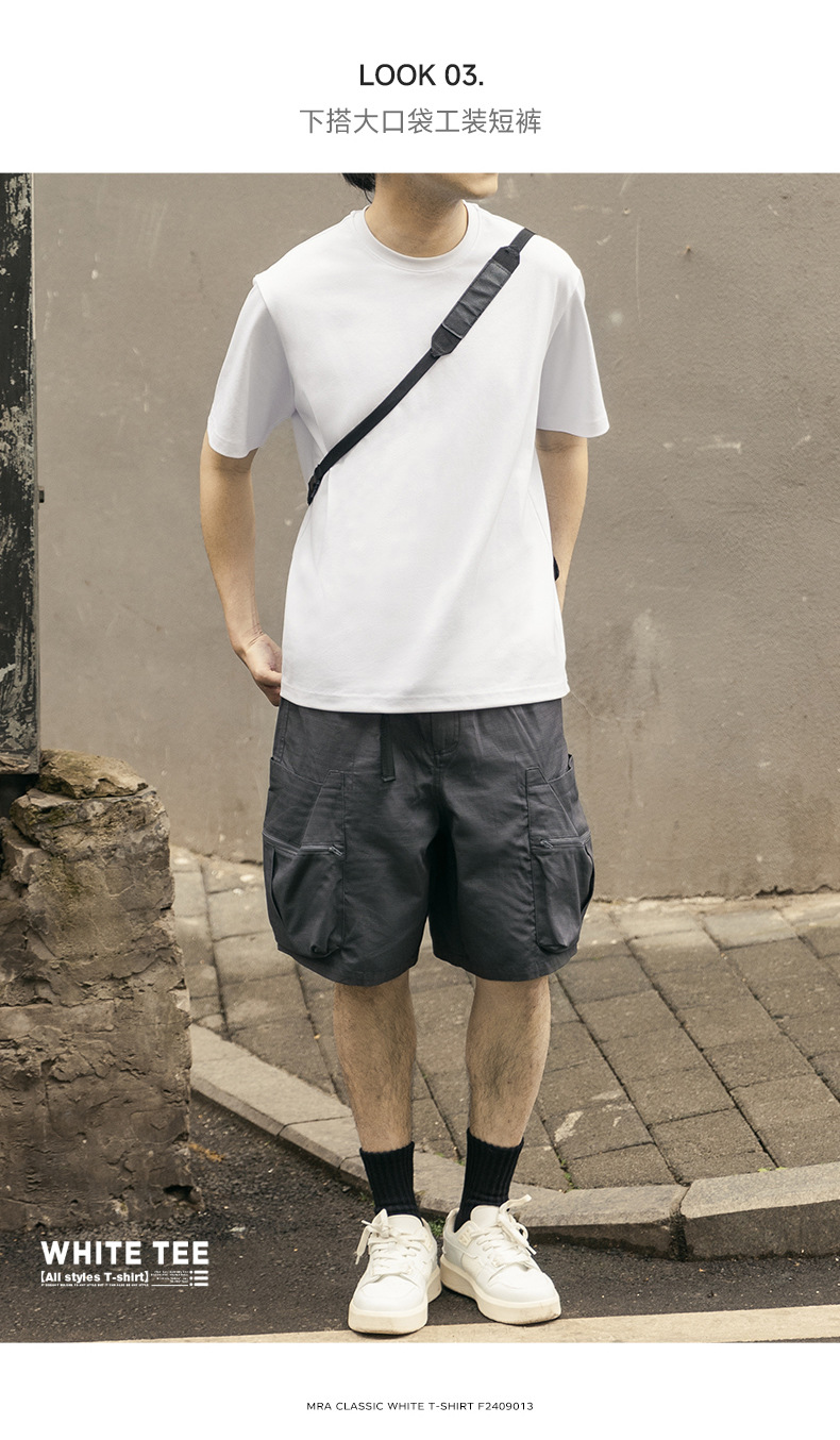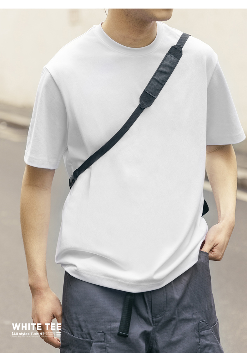 MRA 남성 아메리칸 레트로 헤비 코튼 티셔츠 오른쪽 어깨 화이트 반팔 반팔 셔츠 남성 여름