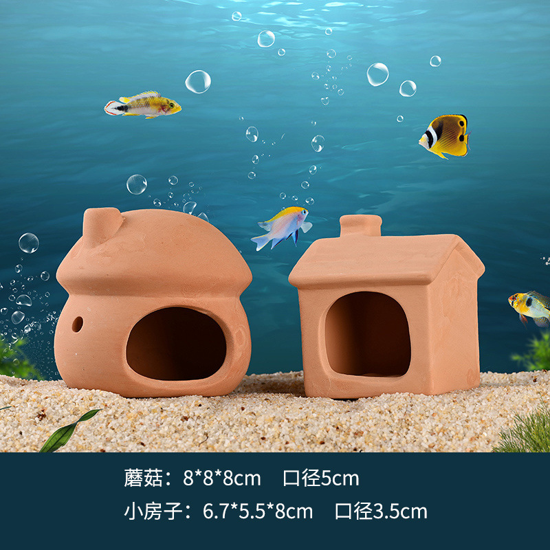 수조 조경 붉은 점토 항아리 피난처 미니 앵무새 물고기 번식 및 납작 구멍 물고기와 새우 둥지 버섯 장식 장식품