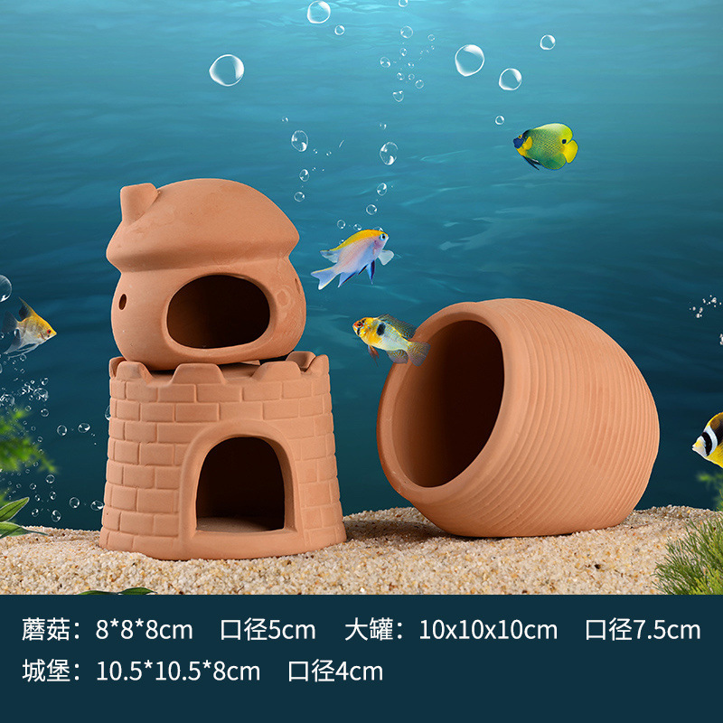 수조 조경 붉은 점토 항아리 피난처 미니 앵무새 물고기 번식 및 납작 구멍 물고기와 새우 둥지 버섯 장식 장식품스토어 가기