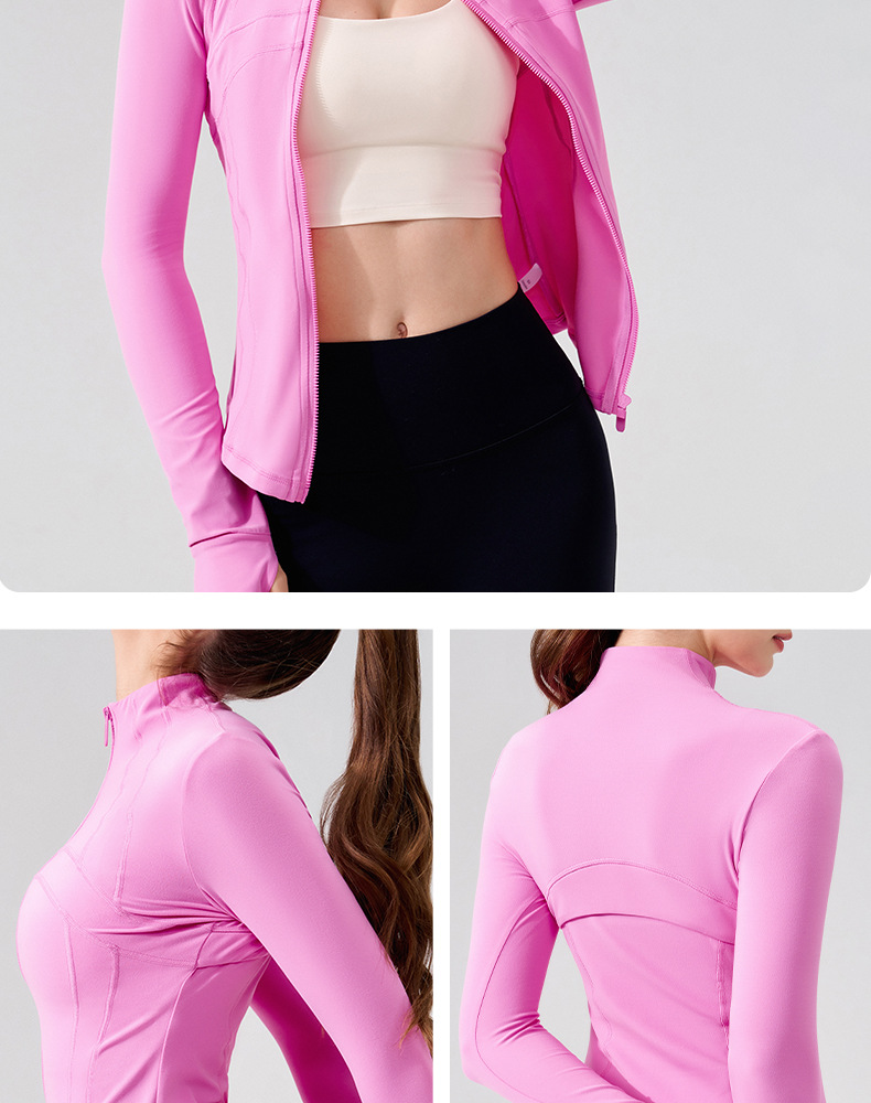 2025 가을 겨울 터틀넥 스포츠 재킷, 슬림핏 요가 상의, 핑거 슬리브가 있는 누드 느낌, 두꺼운 피트니스웨어