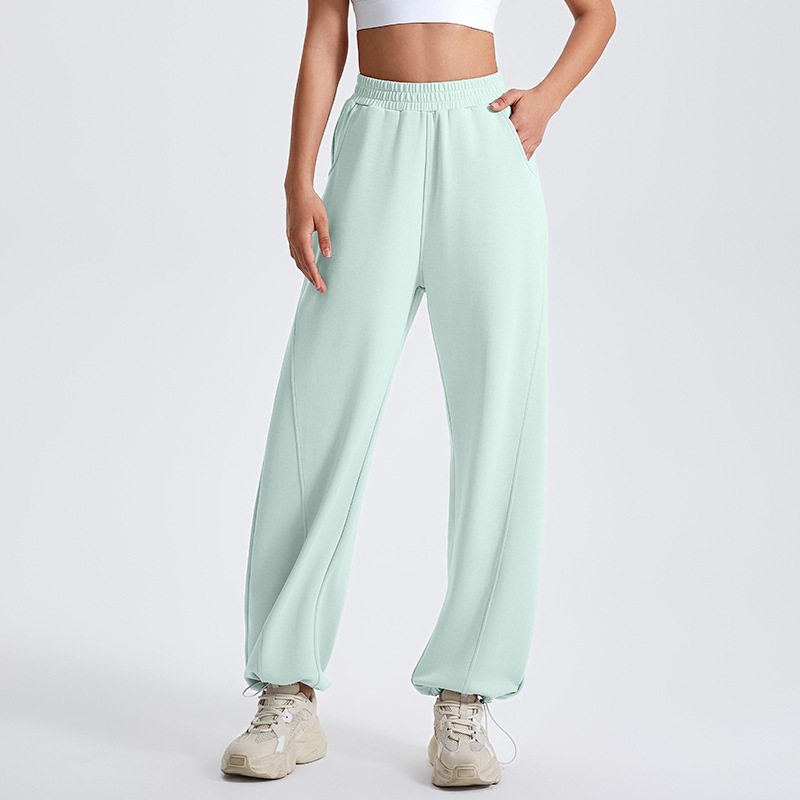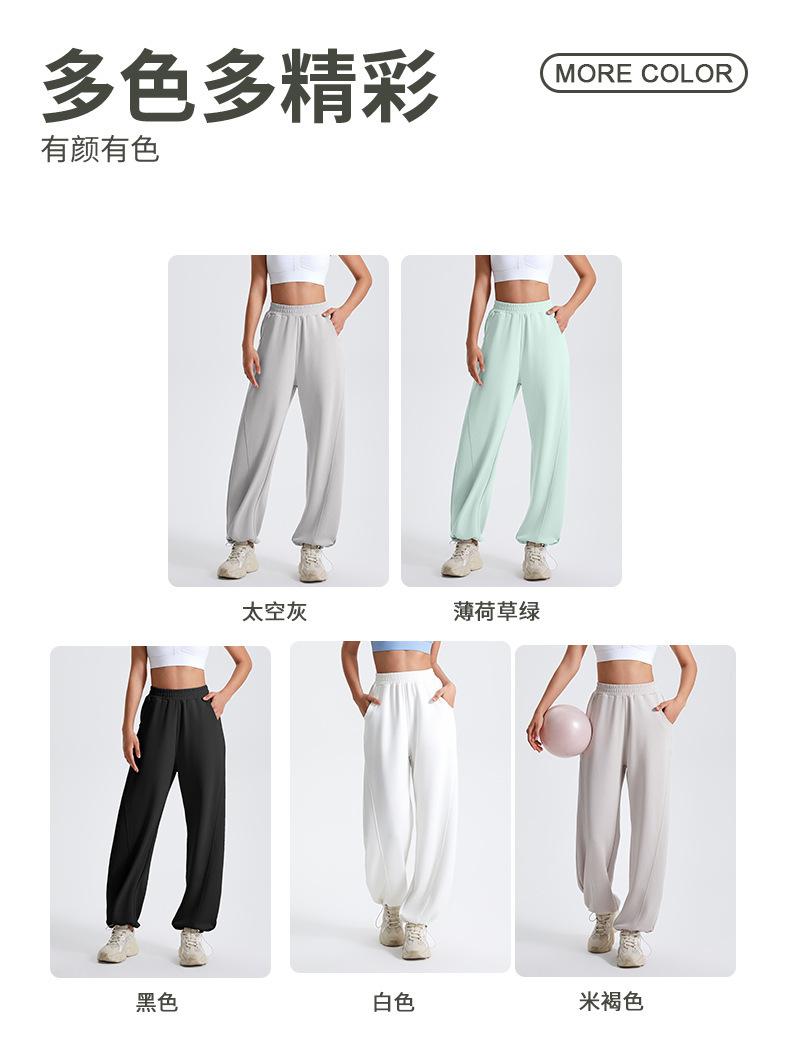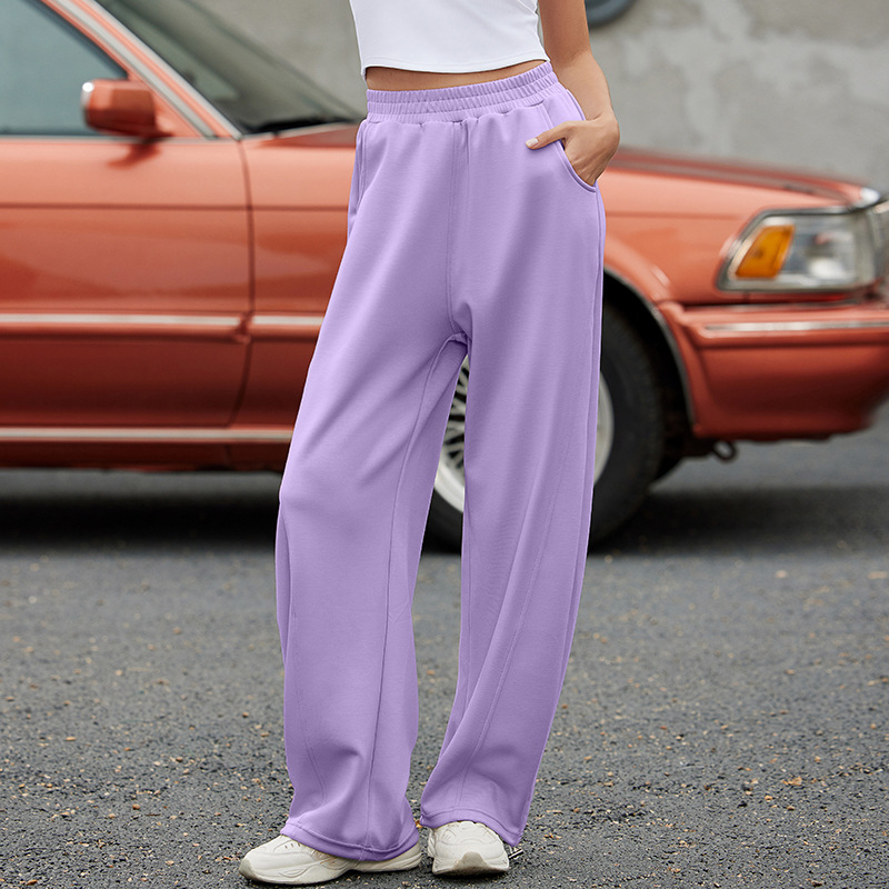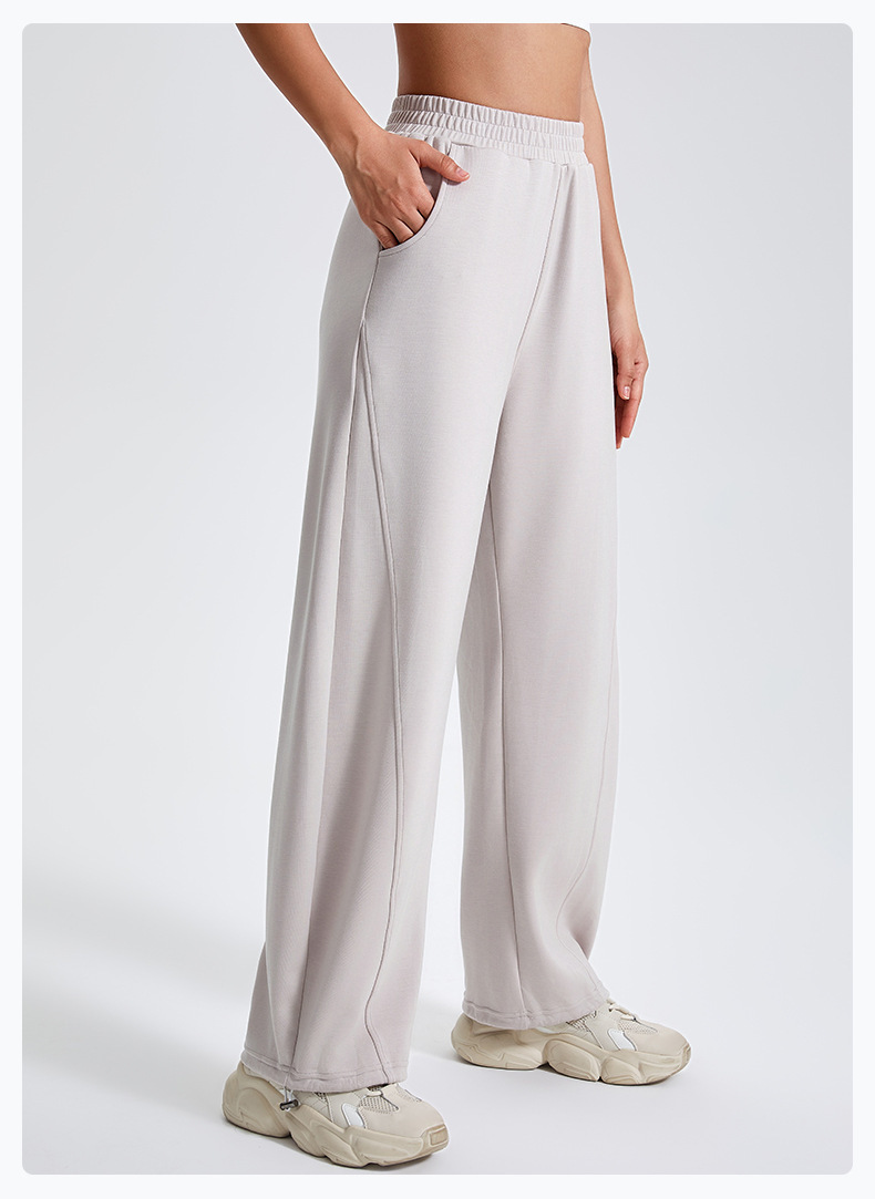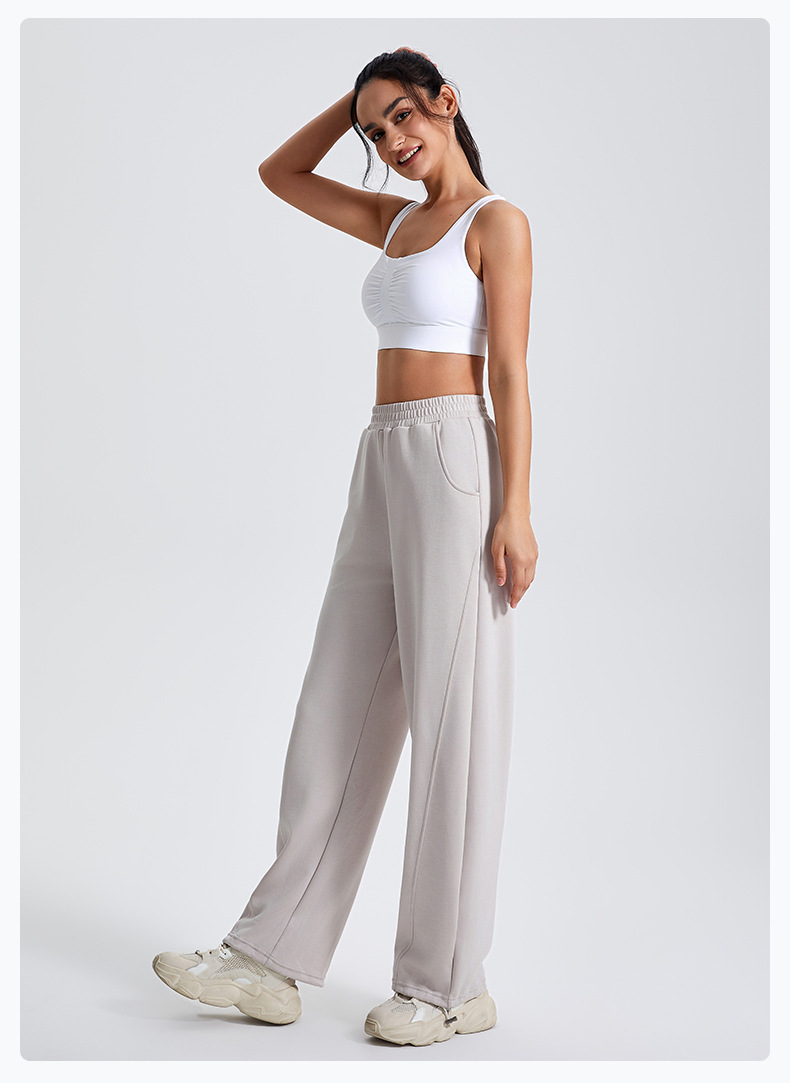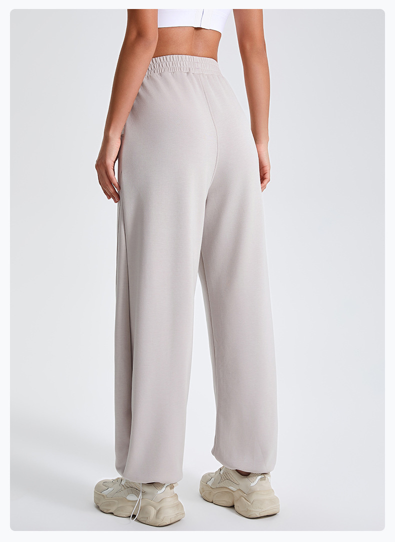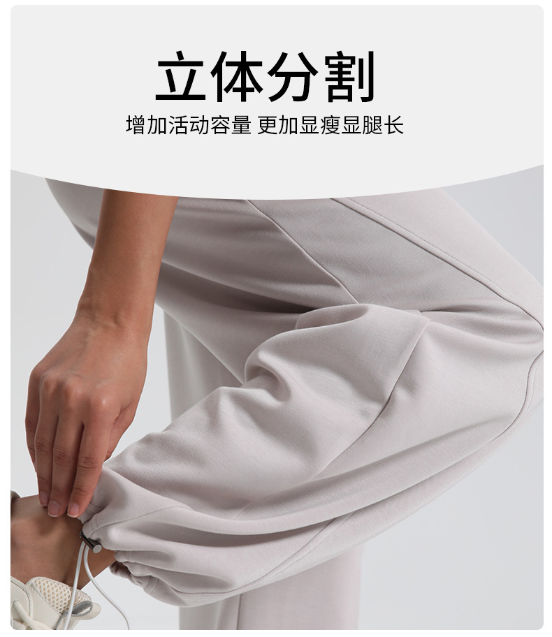 2024 Ice Fabric Solid Color Leg 넓은 다리 착용 스포츠 캐주얼 바지 느슨한 바지 달리기 피트니스 요가 의류스토어 가기