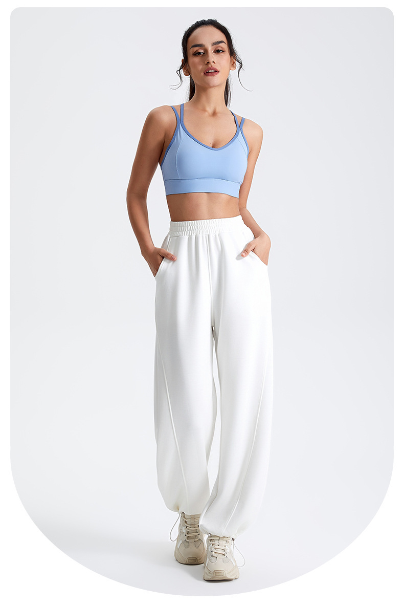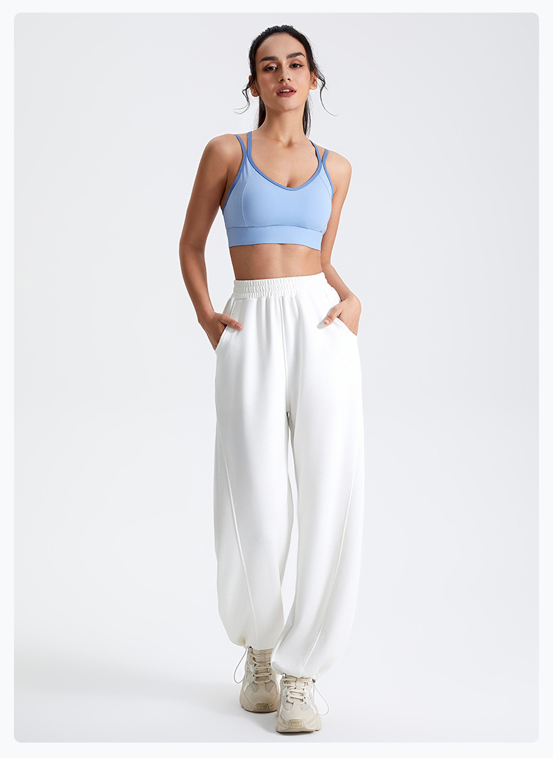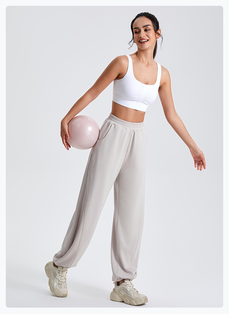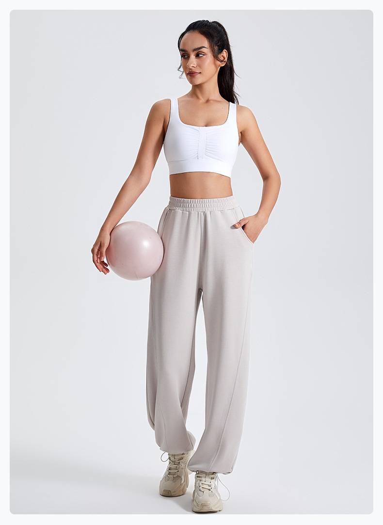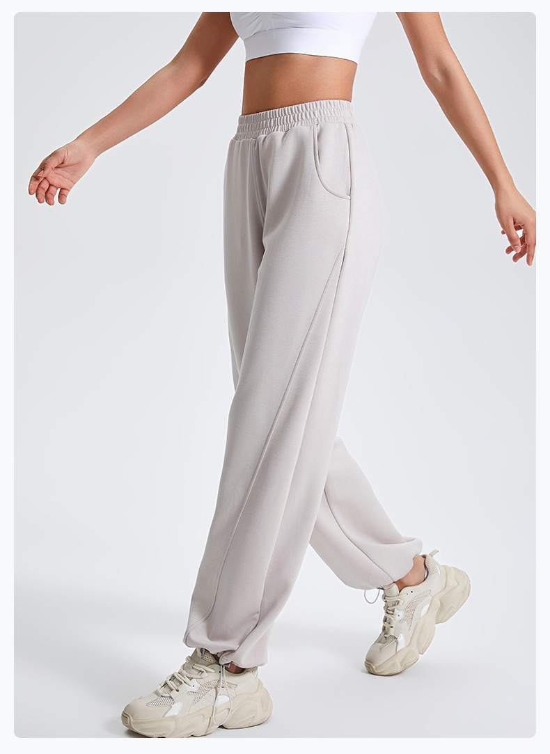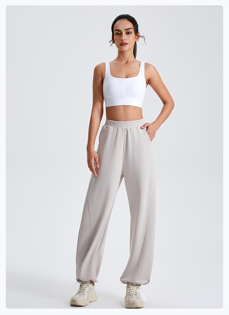 2024 Ice Fabric Solid Color Leg 넓은 다리 착용 스포츠 캐주얼 바지 느슨한 바지 달리기 피트니스 요가 의류스토어 가기