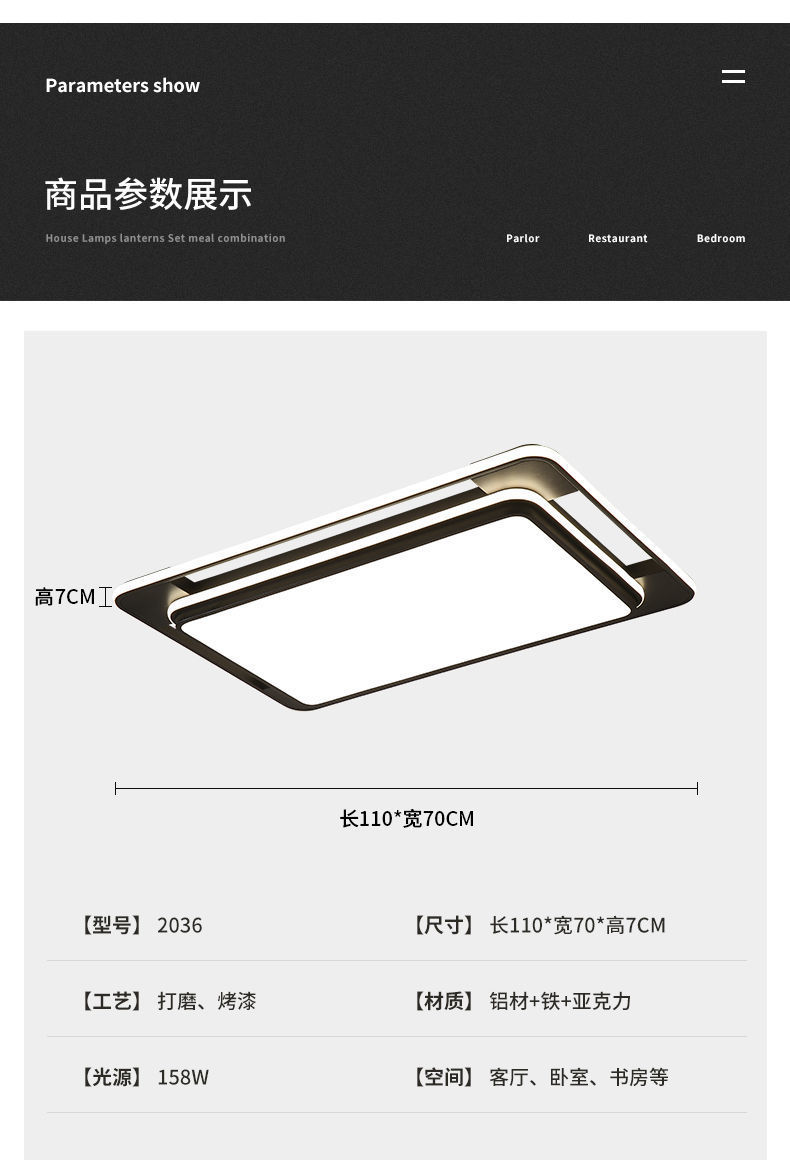 Led 직사각형 거실 천장 조명 현대 간단한 홀 조명 럭셔리 새로운 중산 조명 침실 레스토랑 크로스 보더
