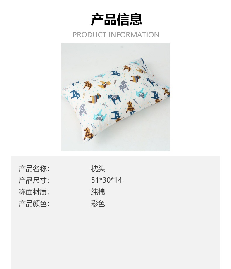 순면 유치원 어린이 베개 A급 순면 진정 및 목 보호 만화 베개 커버 진드기 방지 목 베개 베개심