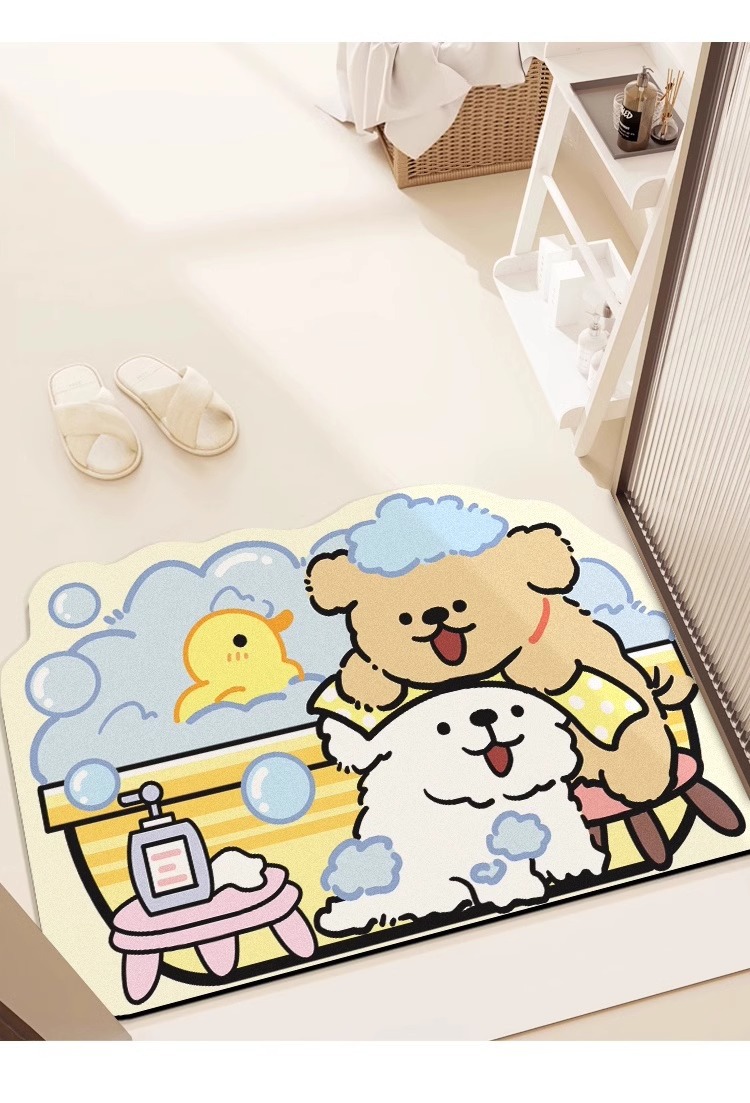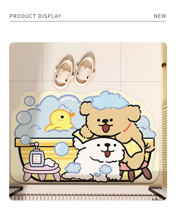 만화 라인 강아지 욕실 바닥 매트, 흡수성, 속건성, 미끄럼 방지 발 매트, 변기 얼룩 방지 및 관리가 쉬운 규조토 진흙 바닥 매트스토어 가기