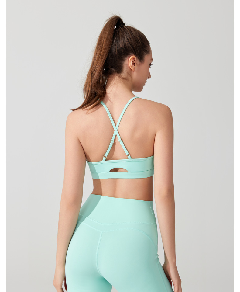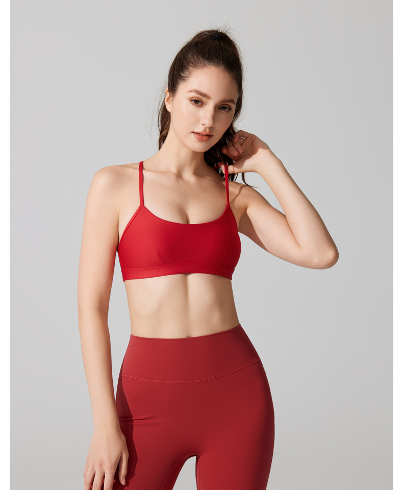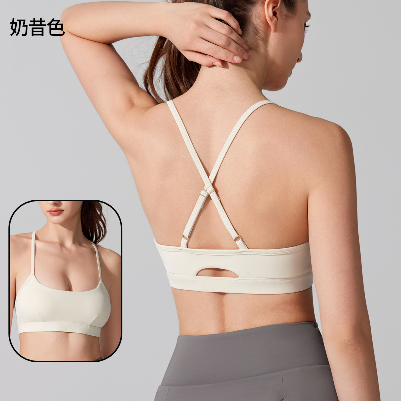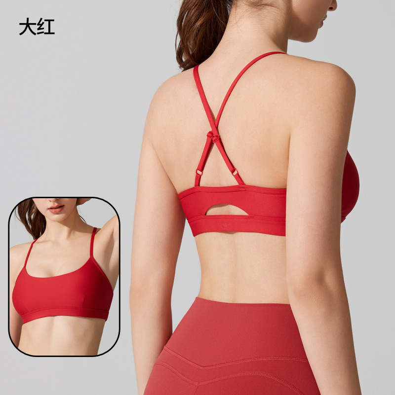 가슴 매트 요가 의류 최고 조절 가능한 알몸 항균 조끼 얇은 스트랩 피트니스 필라테스 아름다운 등을 가진 스포츠 속옷