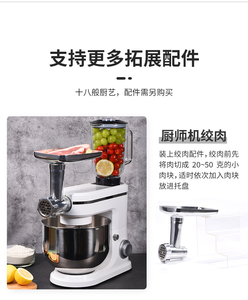 • 6 L-1500W 요리사 기계 + 고기 분쇄 액세서리