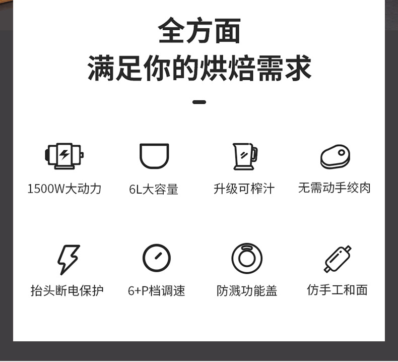 • 6 L-1500W 요리사 기계 + 주스 및 고기 분쇄 액세서리