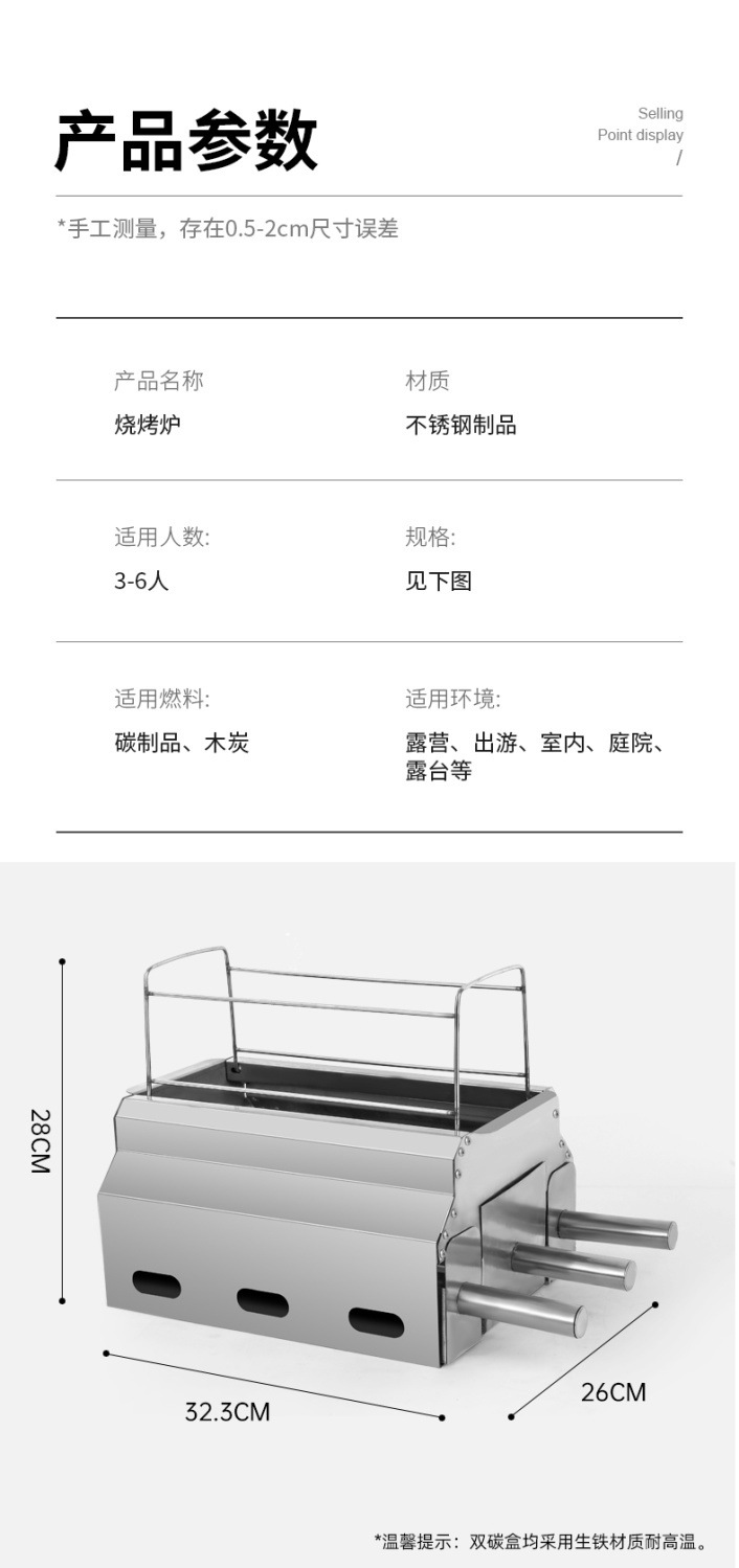 Zibo 바베큐 오븐 상업용 탄소 오븐 가정용 숯 오븐 그물 레드 스테인레스 스틸 탄소 오븐 야외 오븐 대외 무역스토어 가기