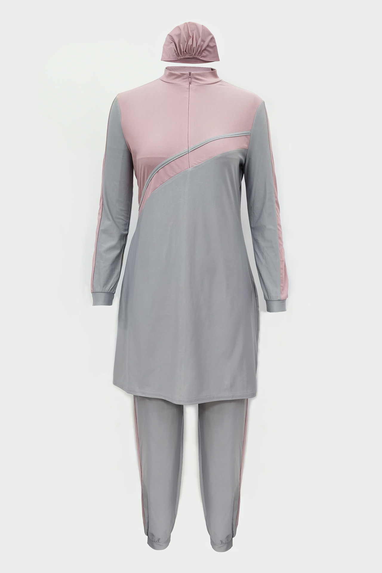완전히 둘러싸인 수영복 3피스 자외선 차단 보수적인 다이빙 지퍼 탑 바지 모자 비치 서핑 수영복