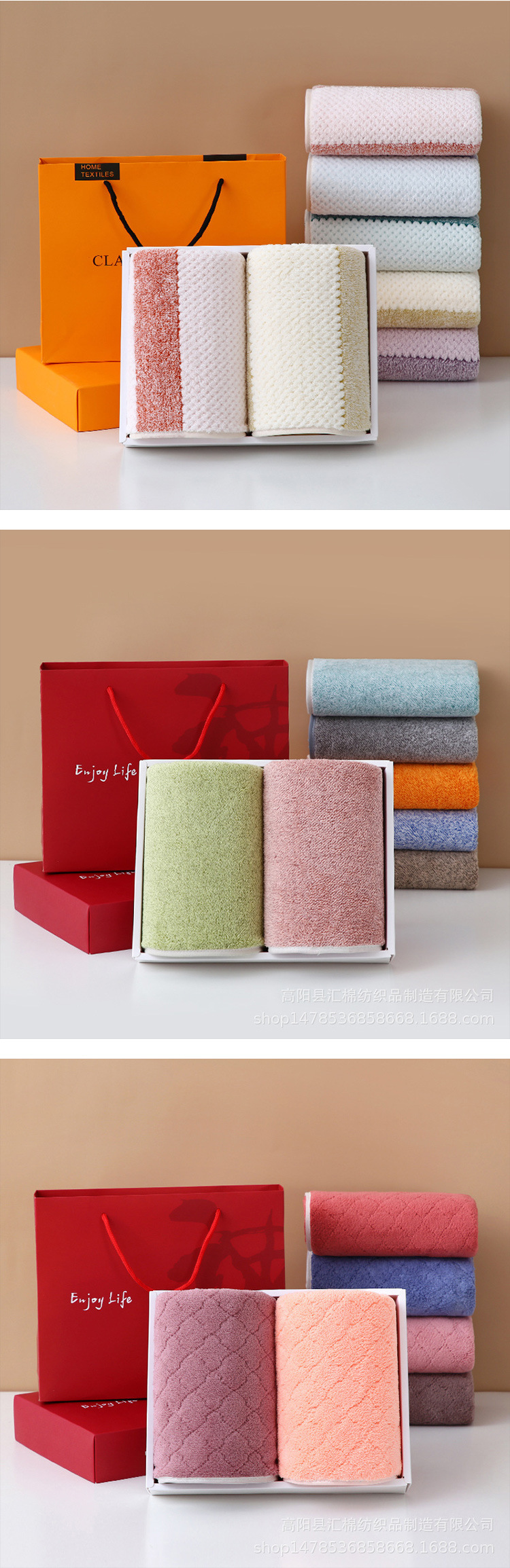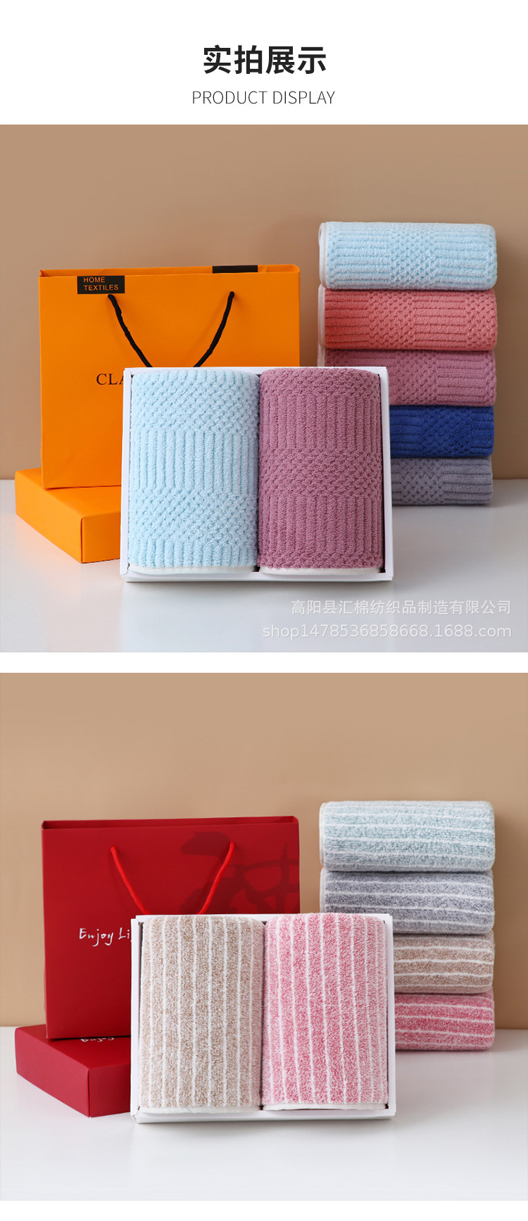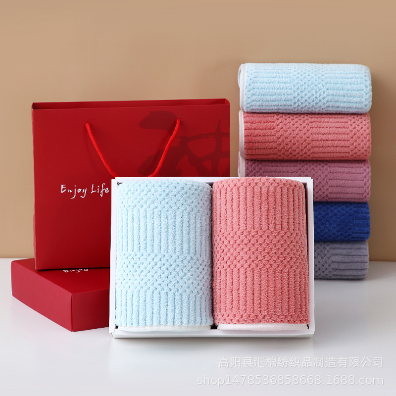 두꺼운 수건 선물 상자 세트 로고 자수 광고 오프닝 상점 축하 결혼식 선물 두 수건 상자