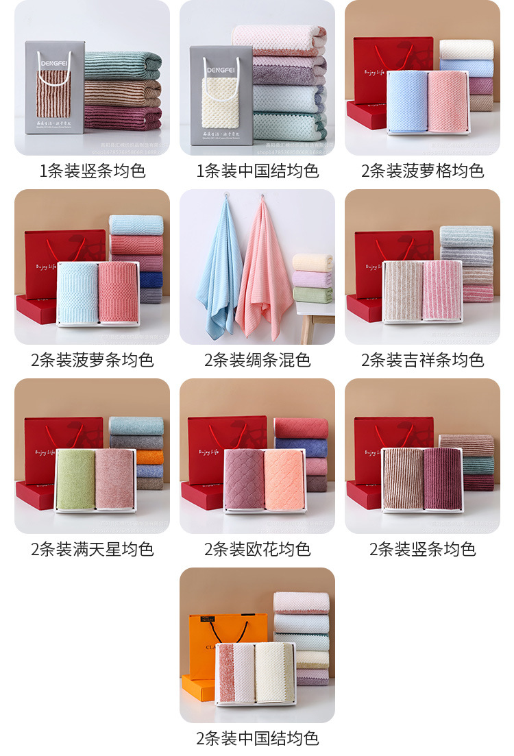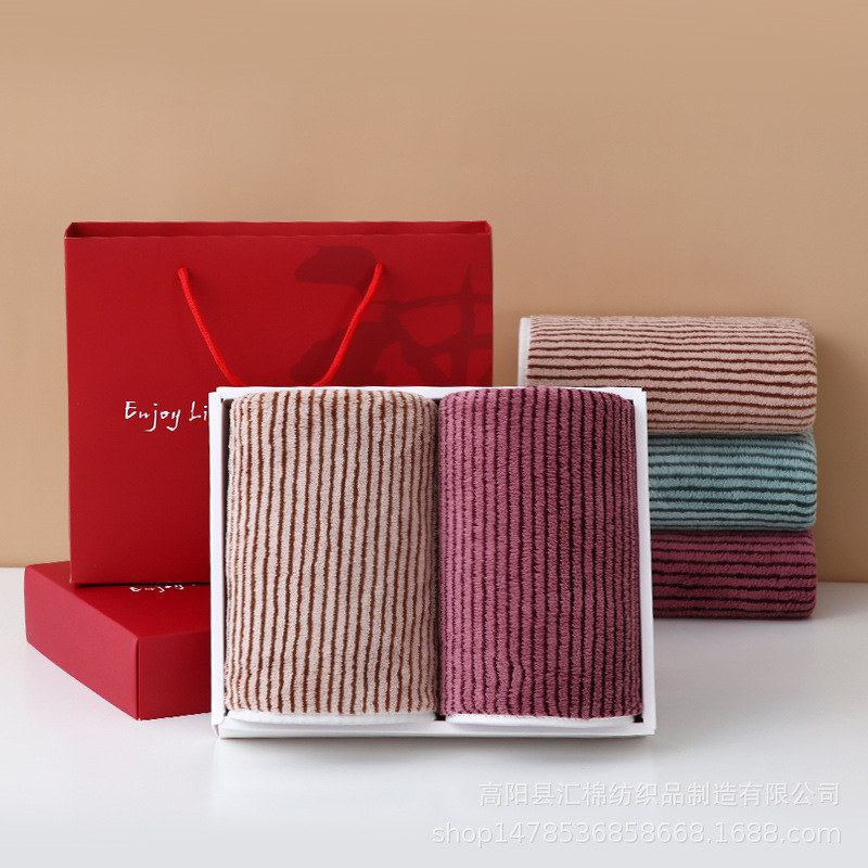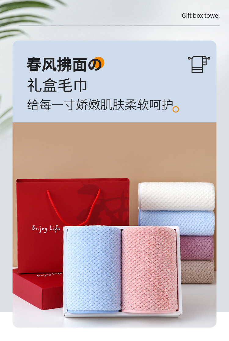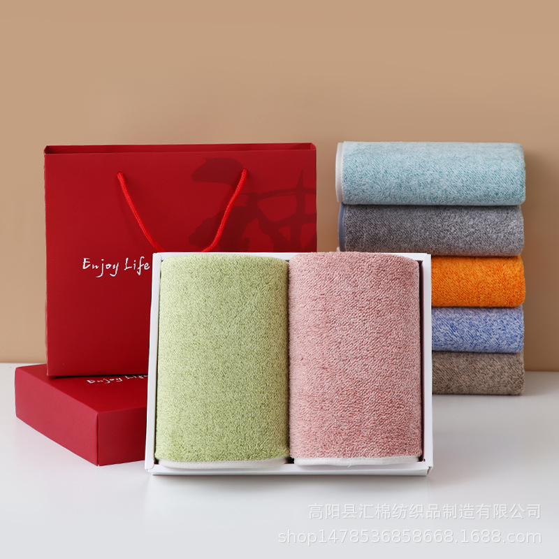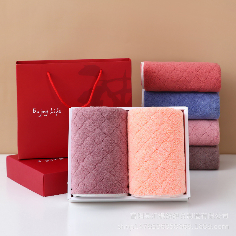 두꺼운 수건 선물 상자 세트 로고 자수 광고 오프닝 상점 축하 결혼식 선물 두 수건 상자