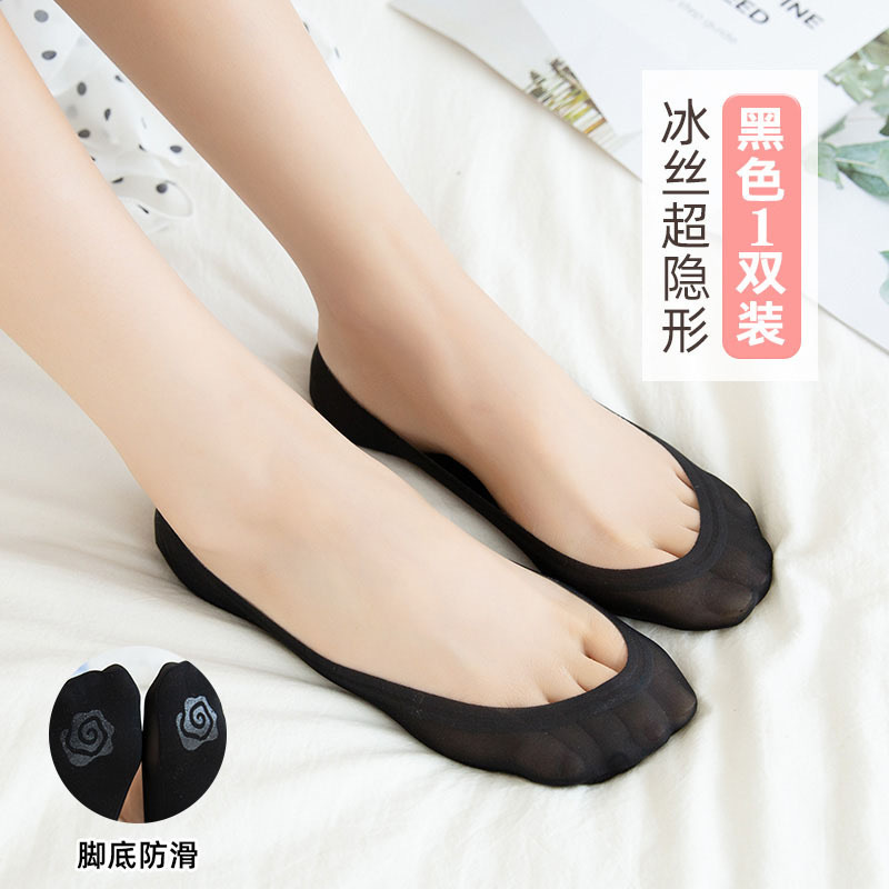 아이스 실크 보트 양말 여성 여름 얇은 미끄럼 방지 하이힐 양말 여성용 짧은 양말 면 얕은 입 보이지 않는 양말