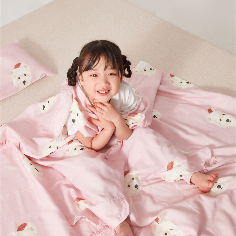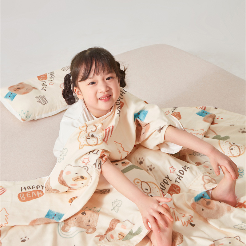 • A급 면 4겹 거즈 킥방지 이불 - 한한 귀여운 곰