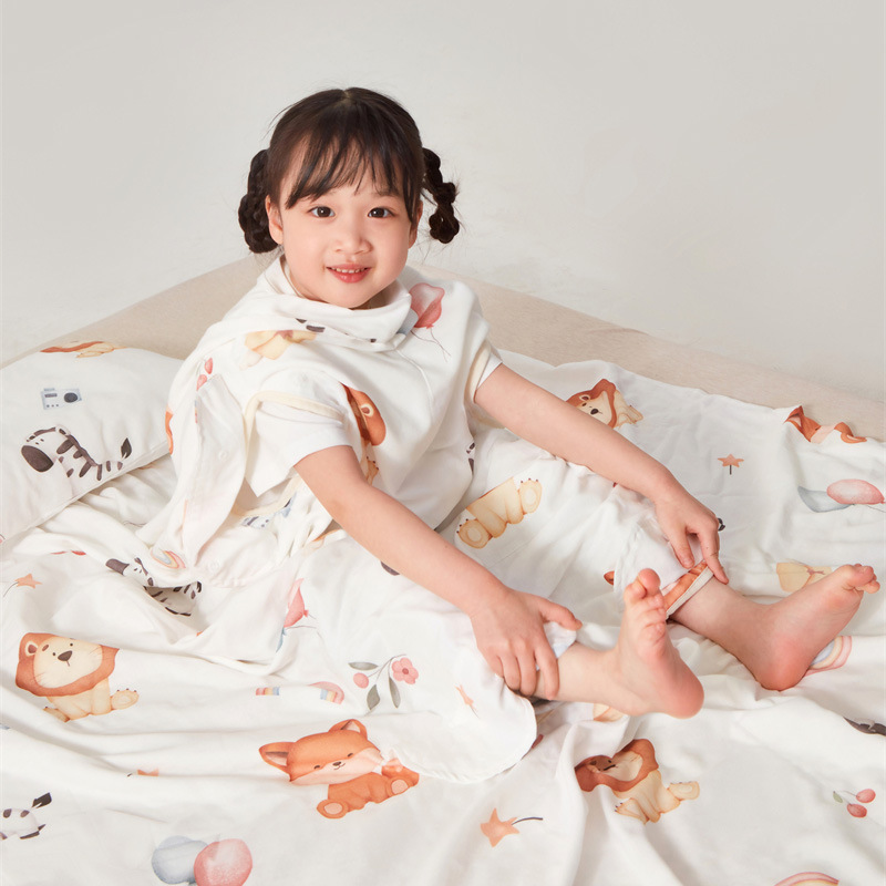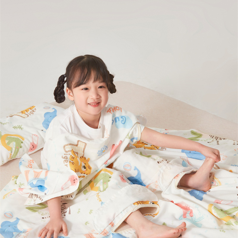 • A급 면 4겹 거즈 킥방지 이불 - 동물의 세계