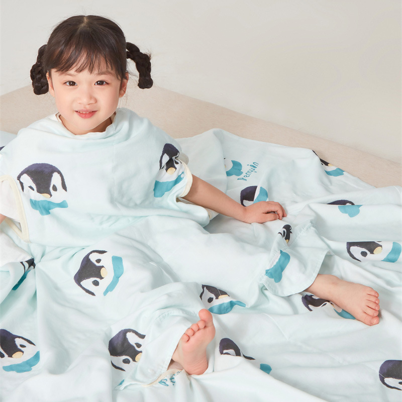 • A급 면 4겹 거즈 킥방지 이불 - 귀엽고 귀여운 꼬마펭귄