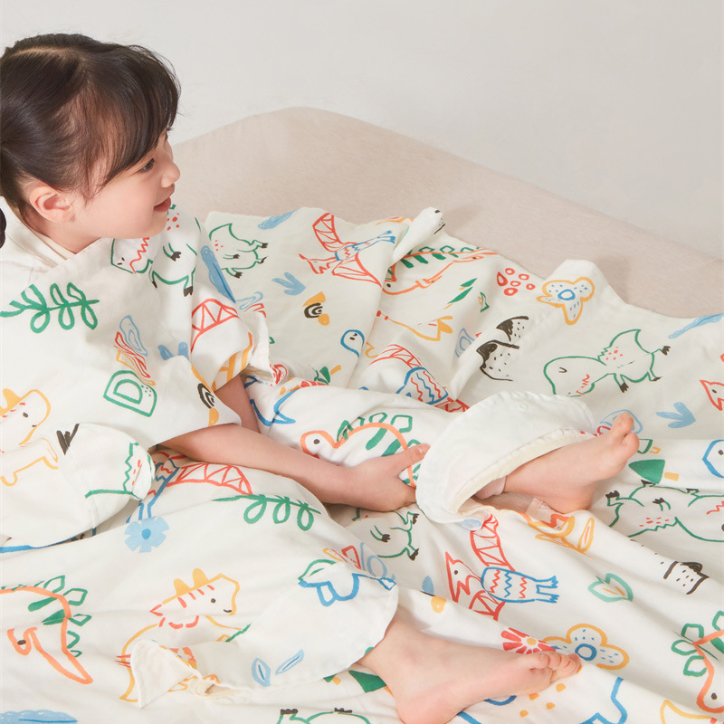• A급 면 4겹 거즈 킥방지 이불 - 공룡이 많아요