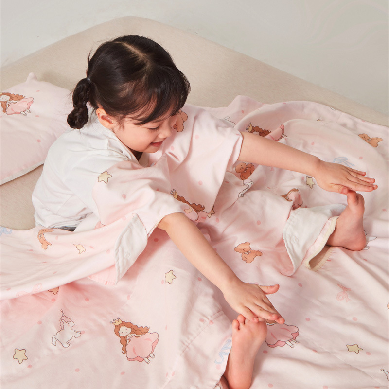 • A급 면 4겹 거즈 안티킥 이불 - 달콤한 작은 공주님