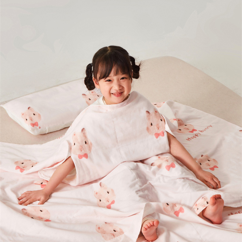 • A급 면 4겹 거즈 안티킥 이불 - 귀엽고 사랑스러운 토끼