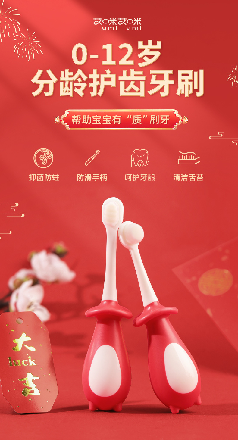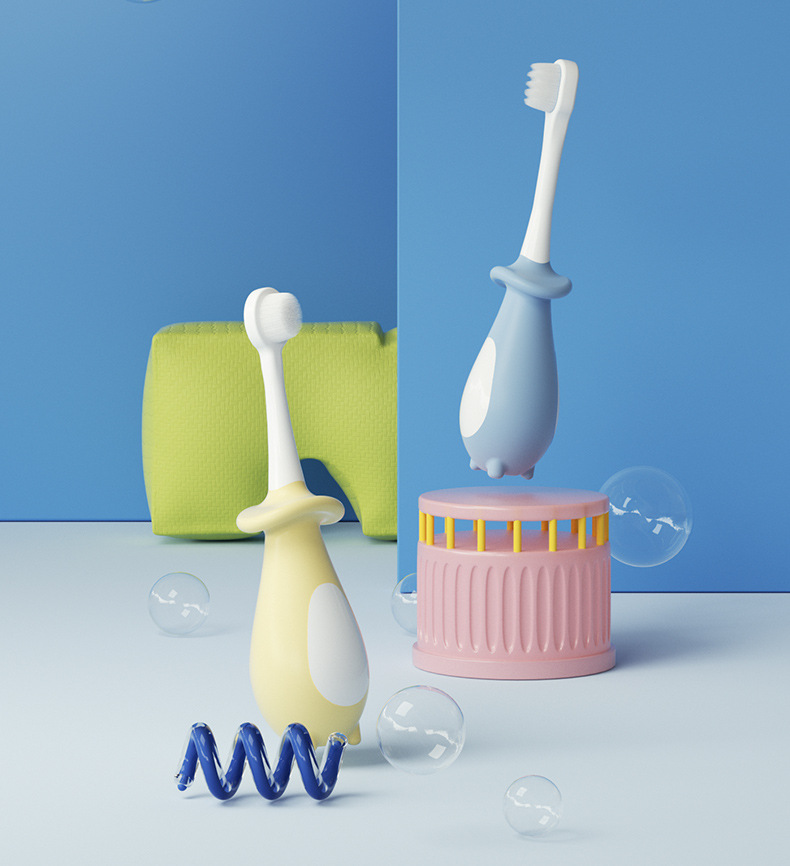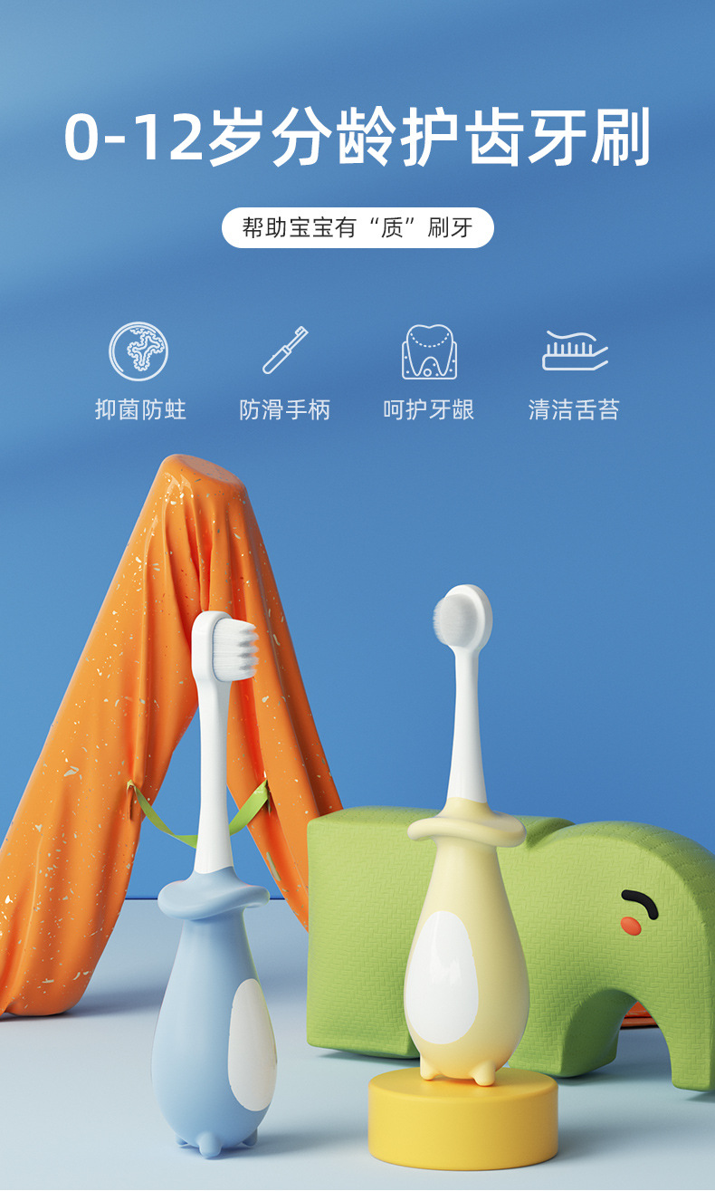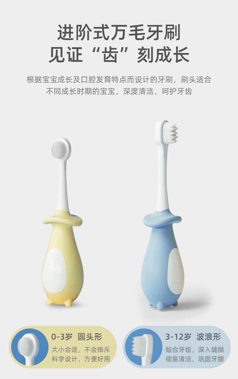 아미아미 만화 칫솔 아기용 펭귄 모양, 번들 없음, 스팟 마우스 가드, 부드러운 모 어린이 칫솔스토어 가기