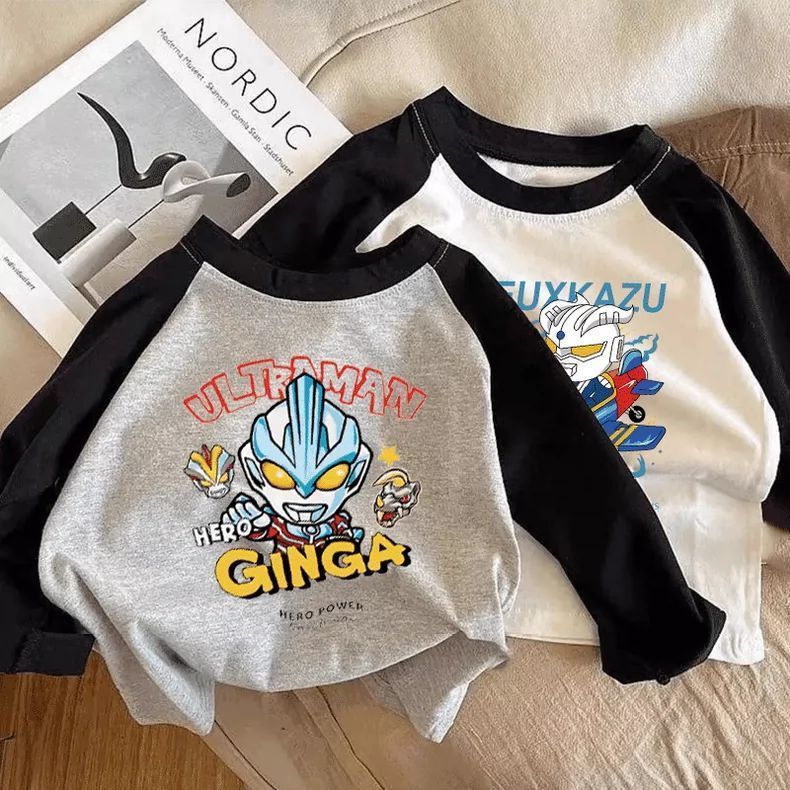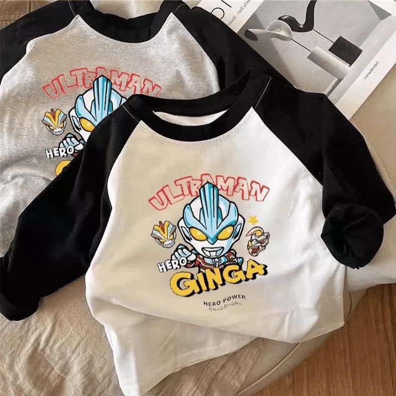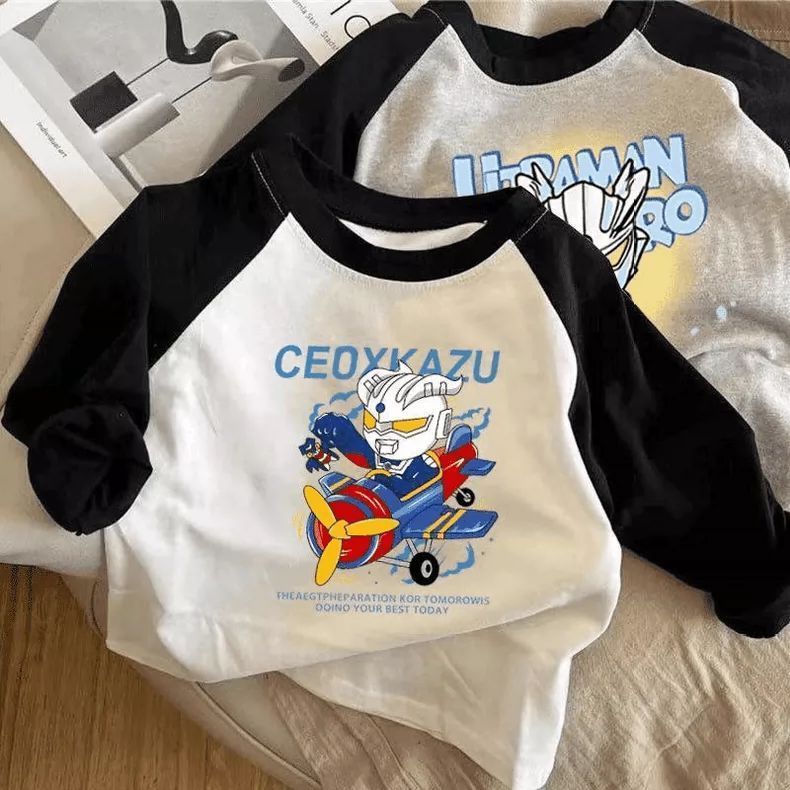 소년 여름 신작 순수 코튼 티셔츠 긴팔 중소형 아동용 울트라맨 바닥 셔츠 캐주얼 탑 가을 의류스토어 가기