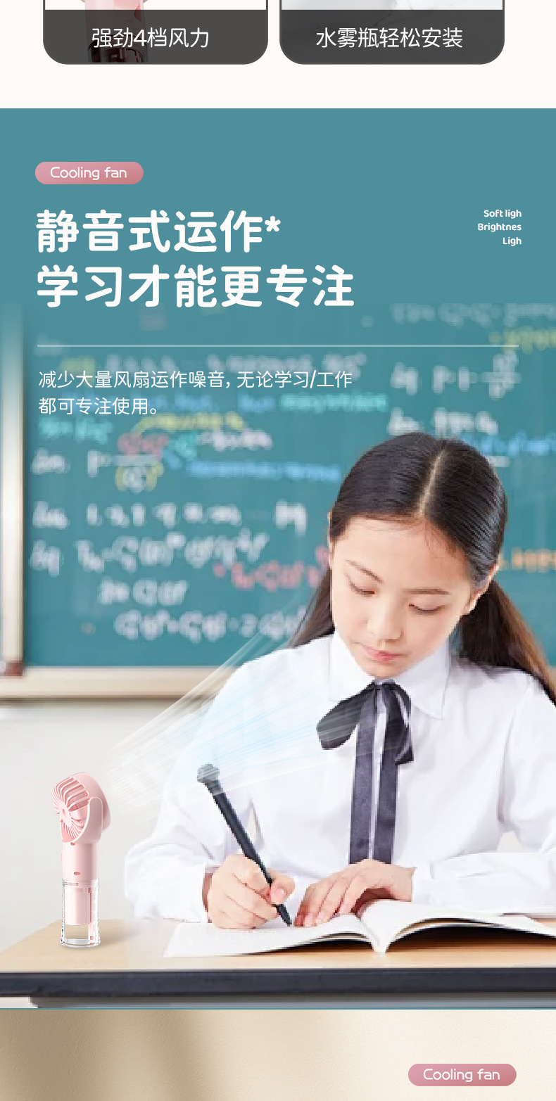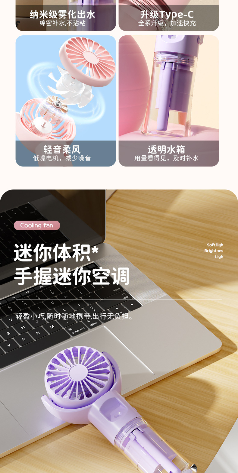 새로운 F4 미니 스프레이 팬 수분 공급 장치 충전식 강풍 침묵 휴대용 학생용 소형 팬스토어 가기