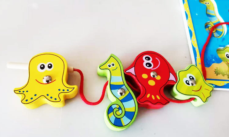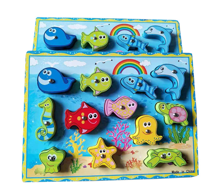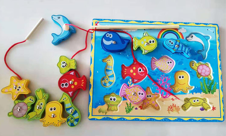 나무 낚시 장난감 0-3 세 어린이 아기 자기 스레드 작은 물고기 소년과 소녀 조기 교육 교육 빌딩 블록 퍼즐