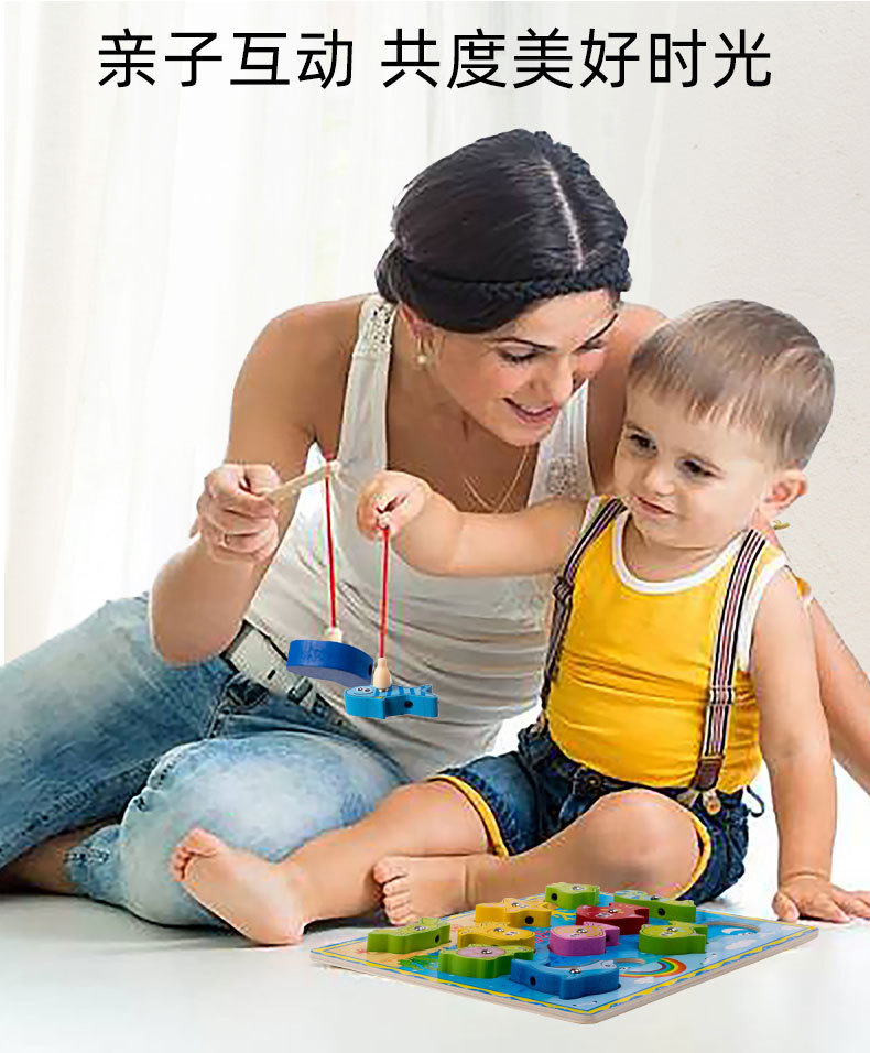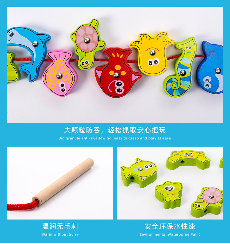 나무 낚시 장난감 0-3 세 어린이 아기 자기 스레드 작은 물고기 소년과 소녀 조기 교육 교육 빌딩 블록 퍼즐스토어 가기