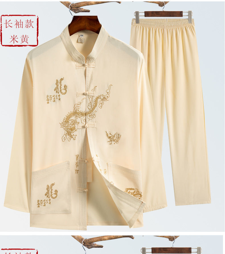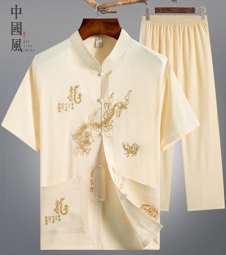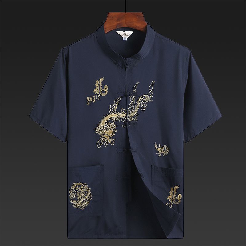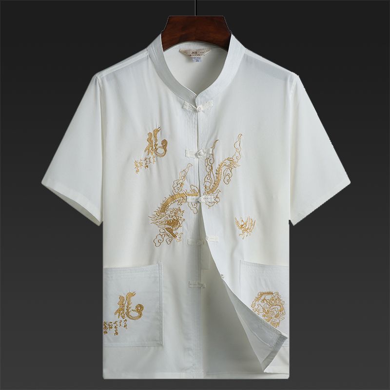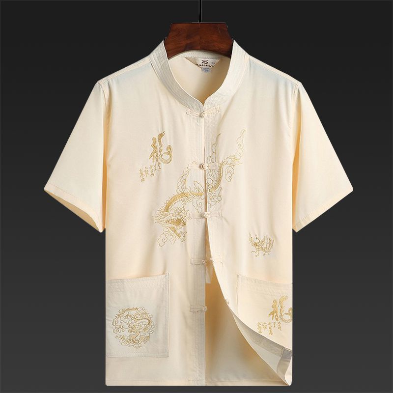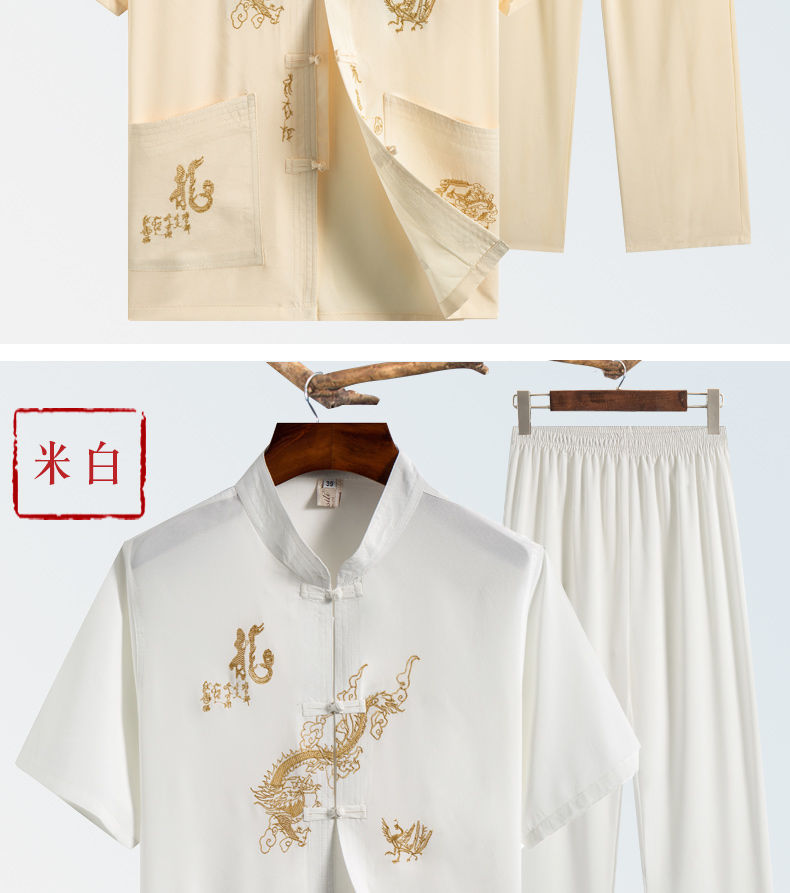 중국 스타일 당나라 정장 중년 및 노인 Hanfu 아빠 여름 캐주얼 복고풍 반팔 양복 할아버지 아침 운동 태극권 양복스토어 가기