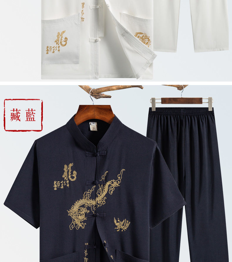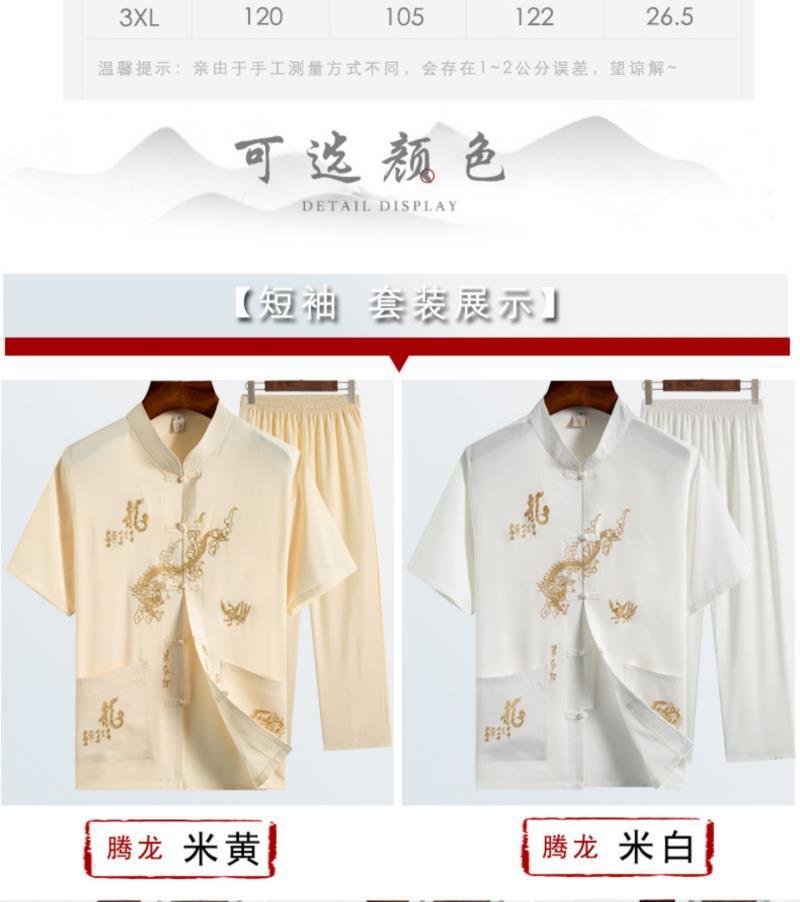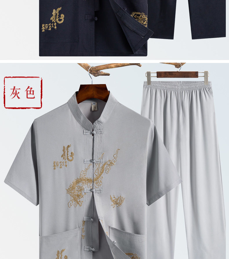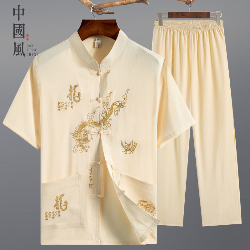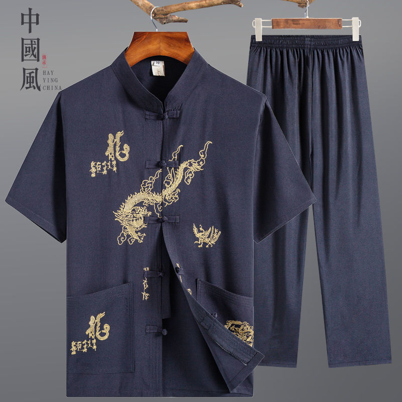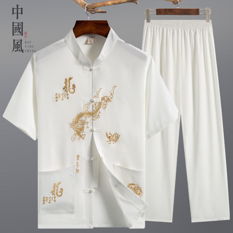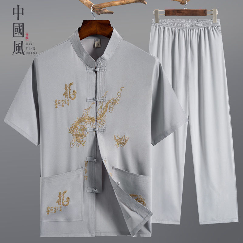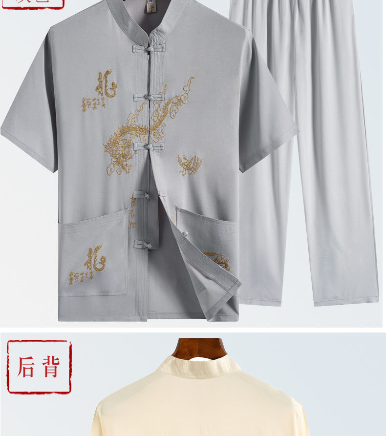 중국 스타일 당나라 정장 중년 및 노인 Hanfu 아빠 여름 캐주얼 복고풍 반팔 양복 할아버지 아침 운동 태극권 양복
