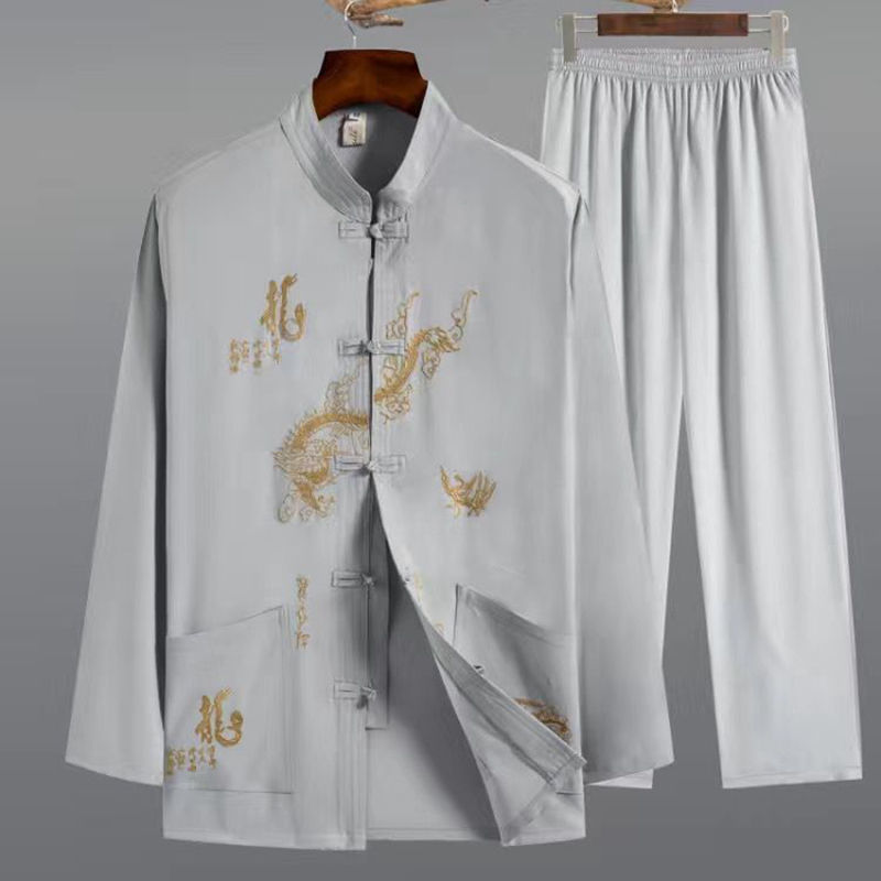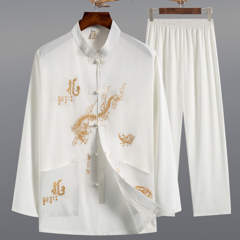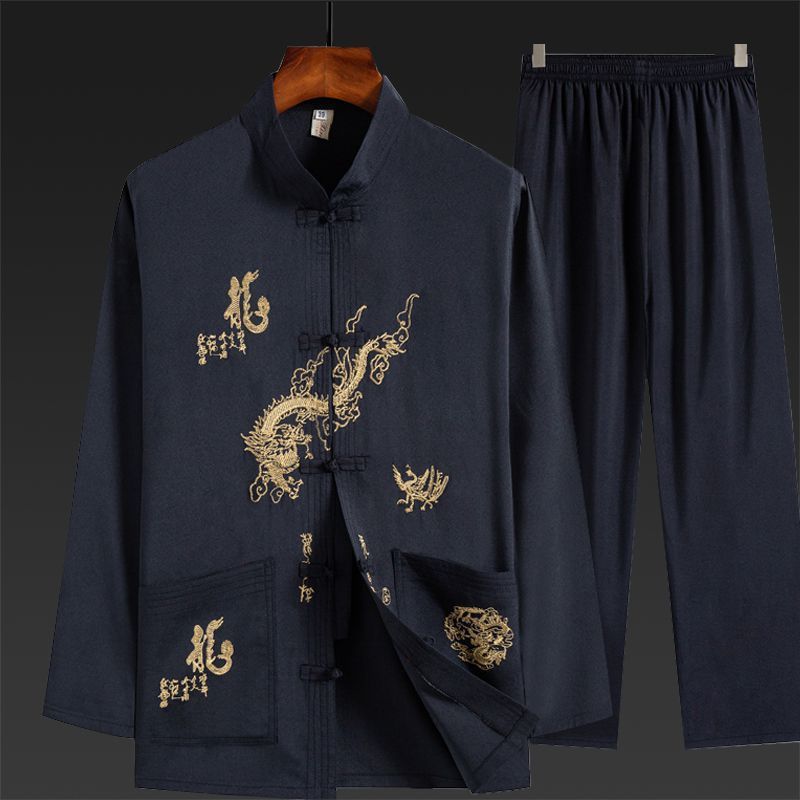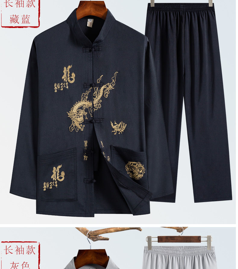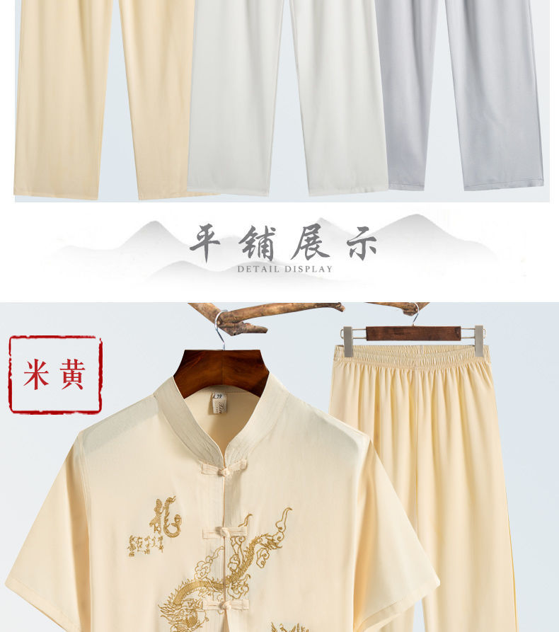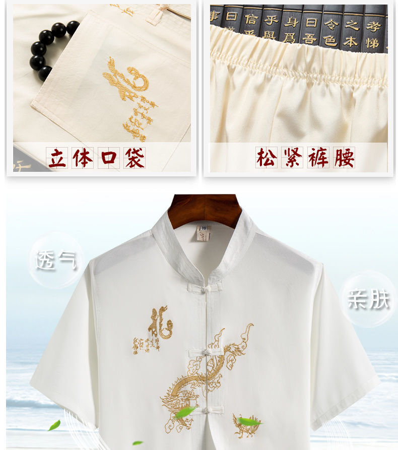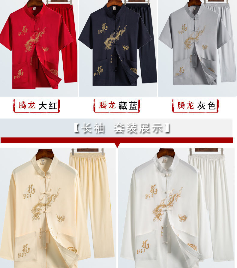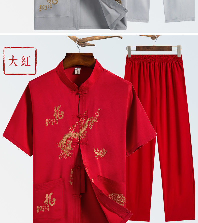 중국 스타일 당나라 정장 중년 및 노인 Hanfu 아빠 여름 캐주얼 복고풍 반팔 양복 할아버지 아침 운동 태극권 양복