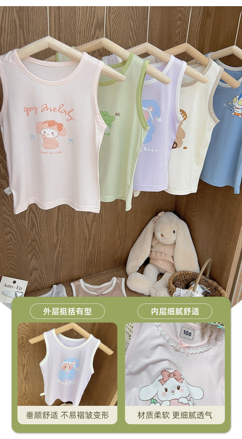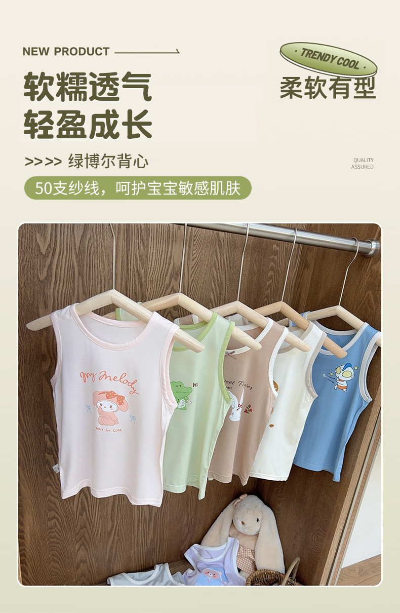 그린 보르 도매 스팟 클래스 A 새로운 여름 유럽 스타일의 간단한 피부 친화적인 통기성 만화 어린이 바닥 조끼