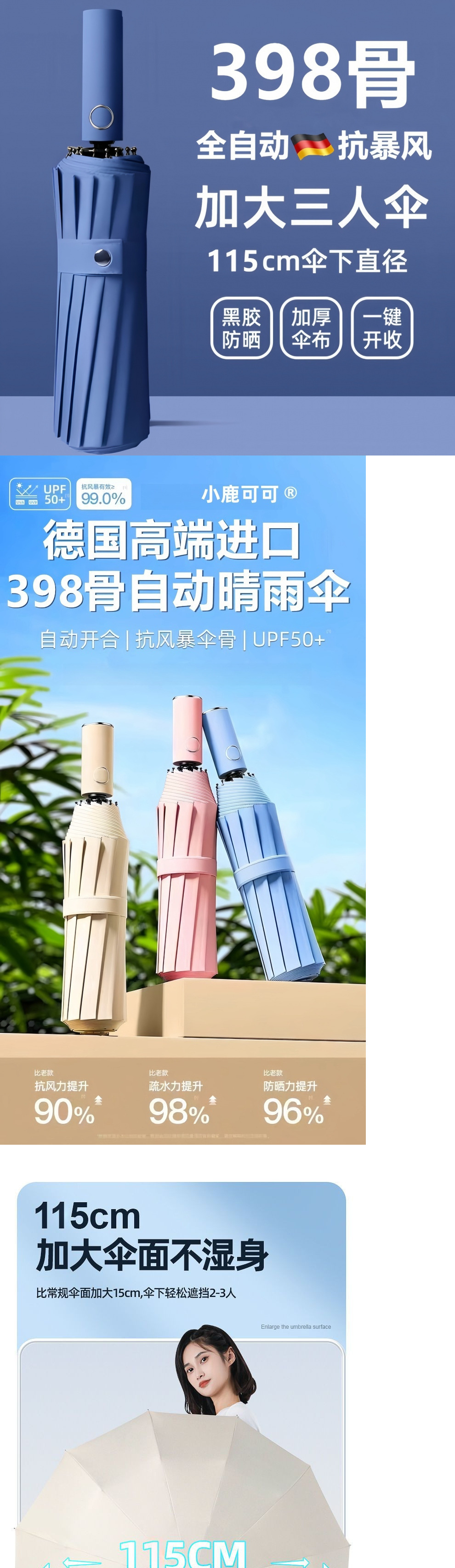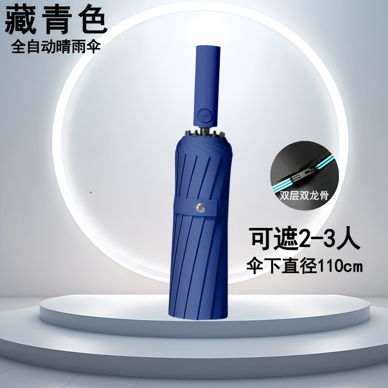 398 뼈 완전 자동 우산 접히는 역풍에 강한 비 및 햇빛 이중 목적 학생 태양 우산 자외선 태양 보호