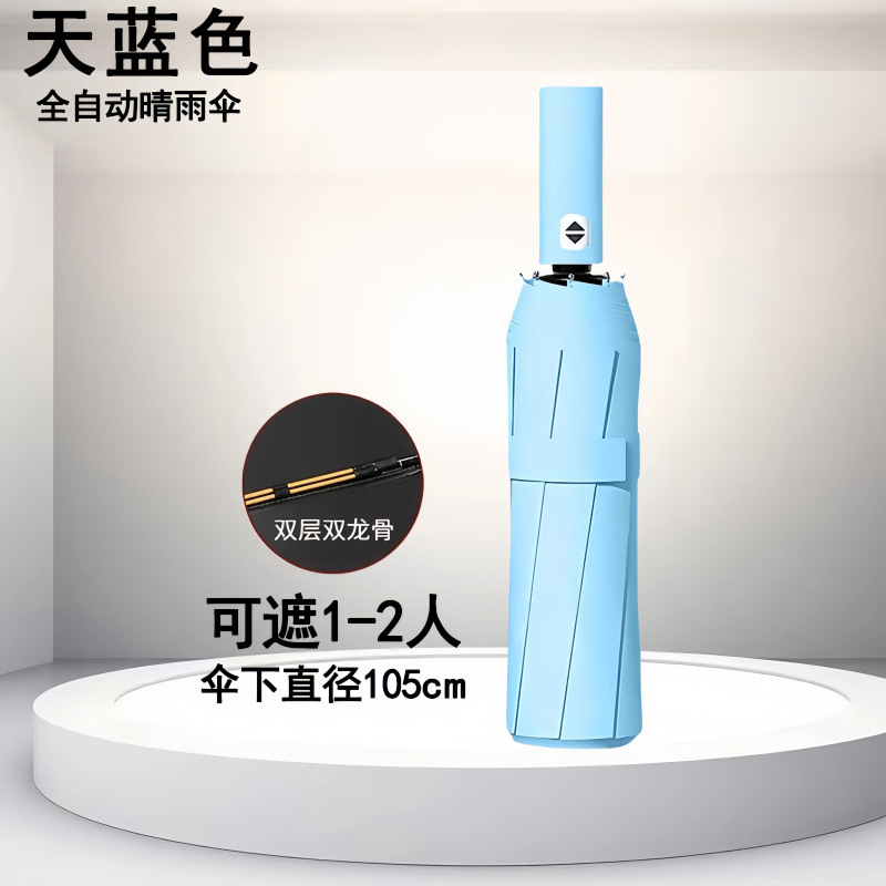 398 뼈 완전 자동 우산 접히는 역풍에 강한 비 및 햇빛 이중 목적 학생 태양 우산 자외선 태양 보호스토어 가기